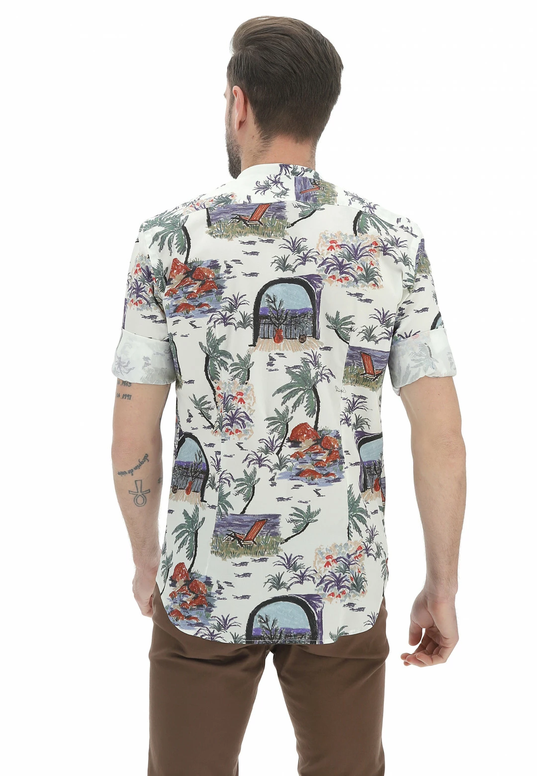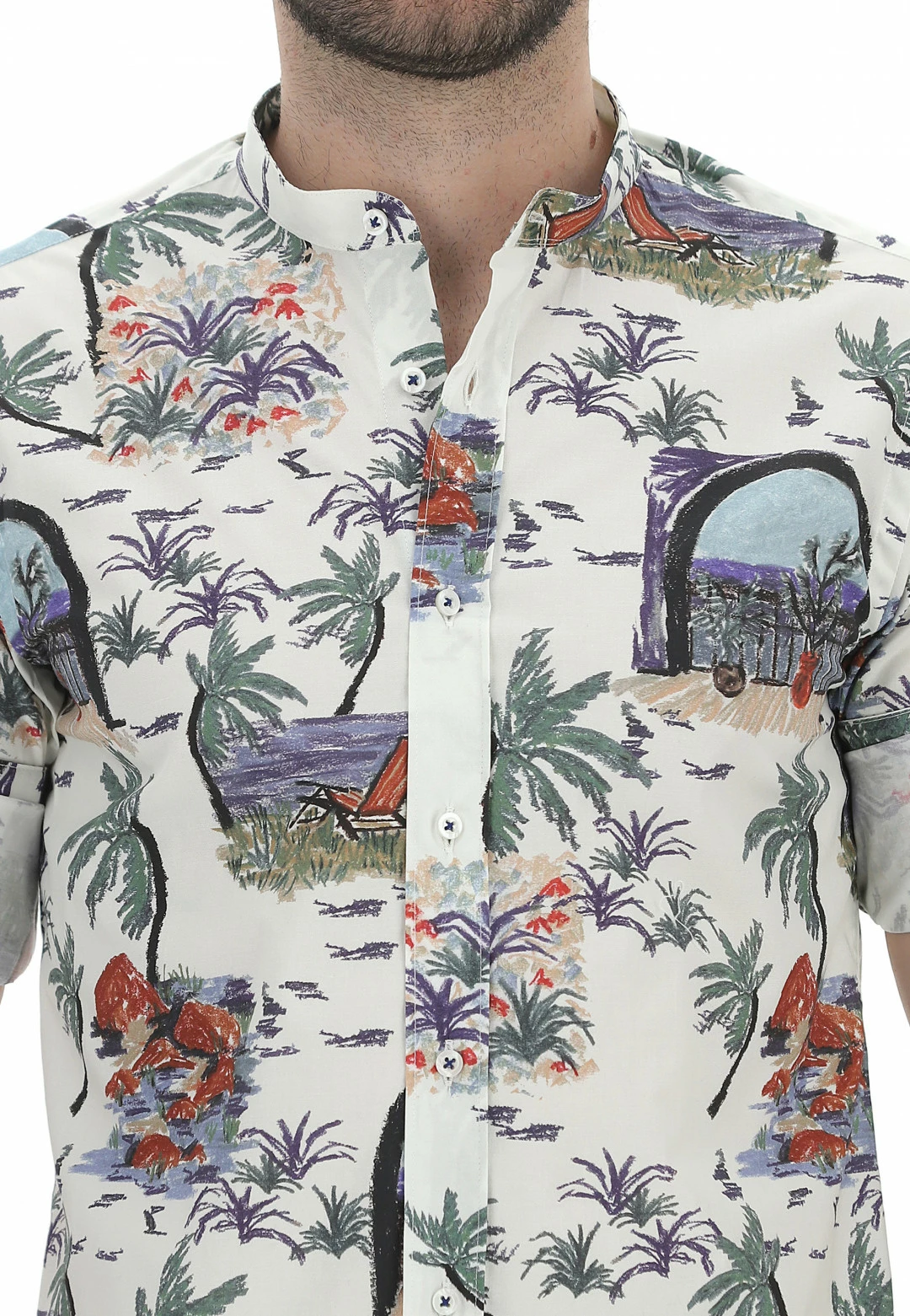 8.9 OTTOPUNTONOVE Camicia Con Scollo Alla Coreana 8.9 In Fantasia Mare All Over