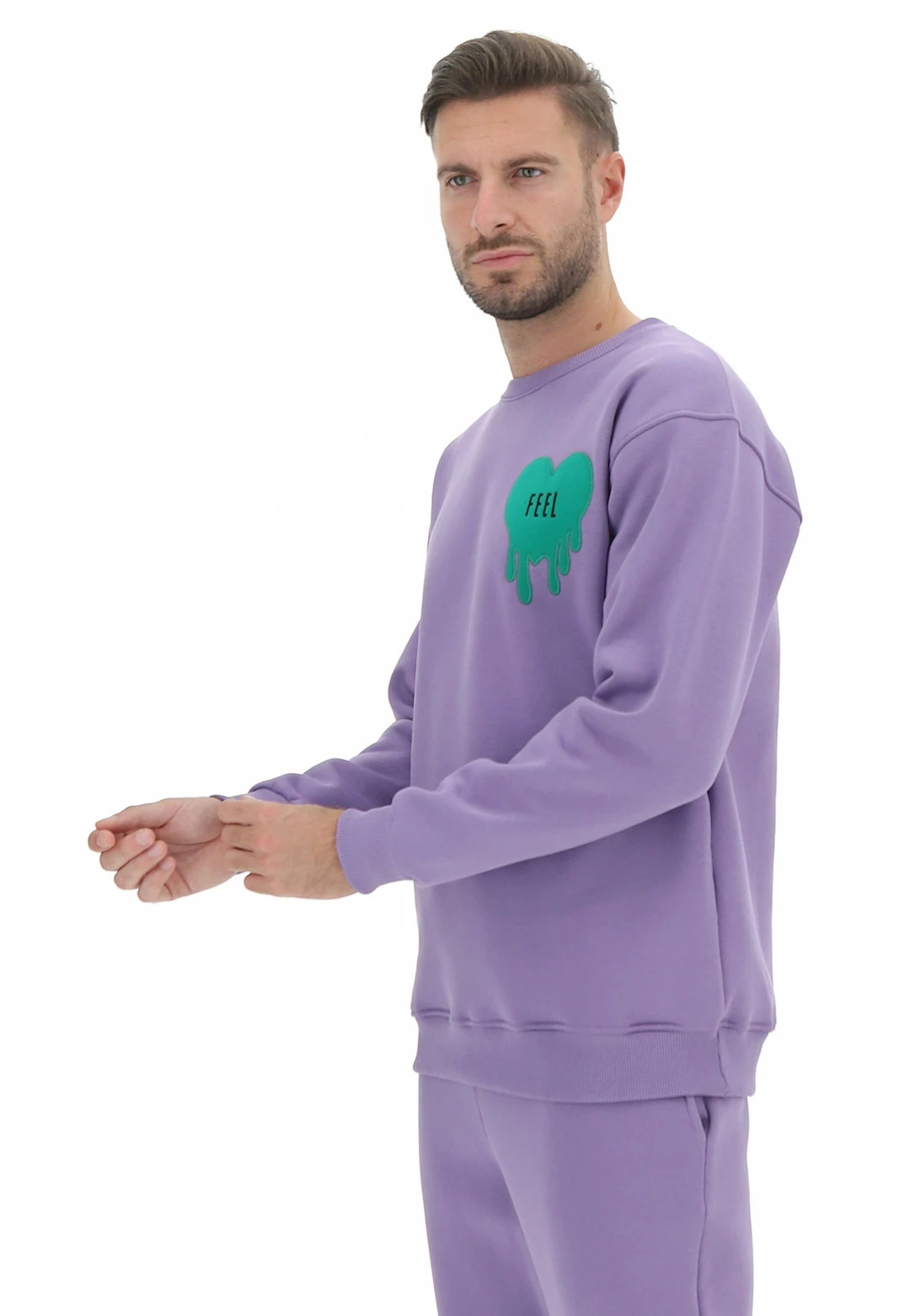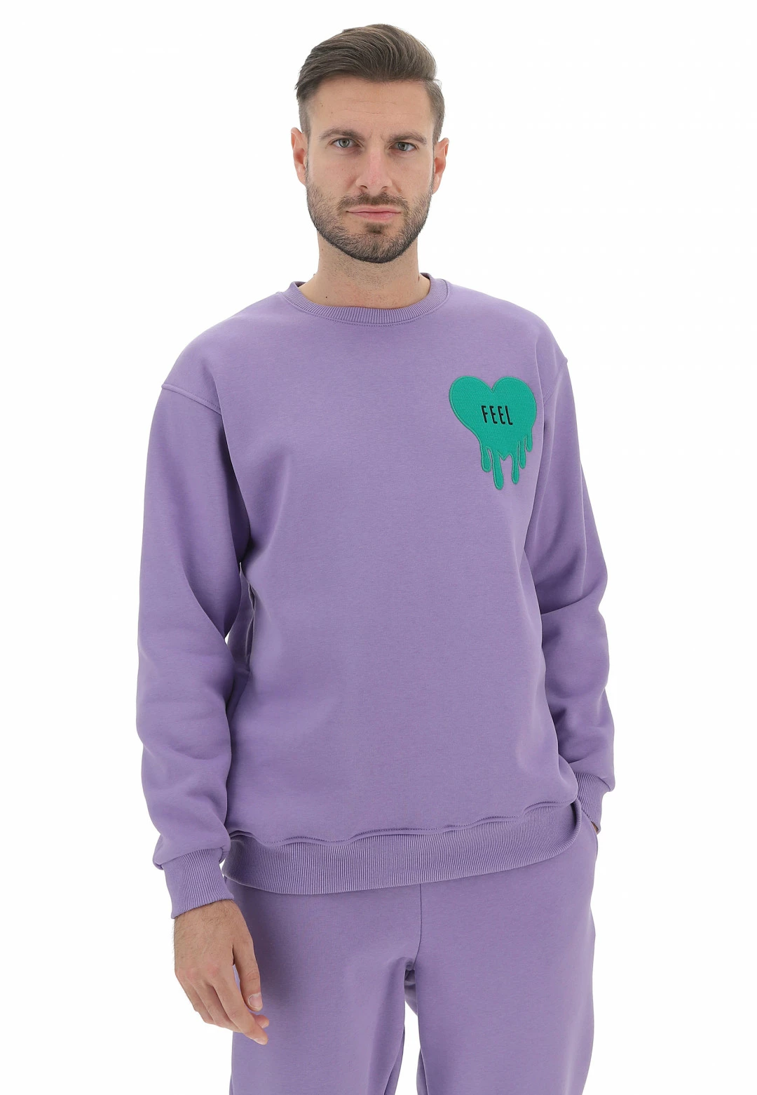 8.9 OTTOPUNTONOVE Felpa Girocollo 8.9 Felpata Con Disegno Ricamato Latterale A Contrasto Made In Italy