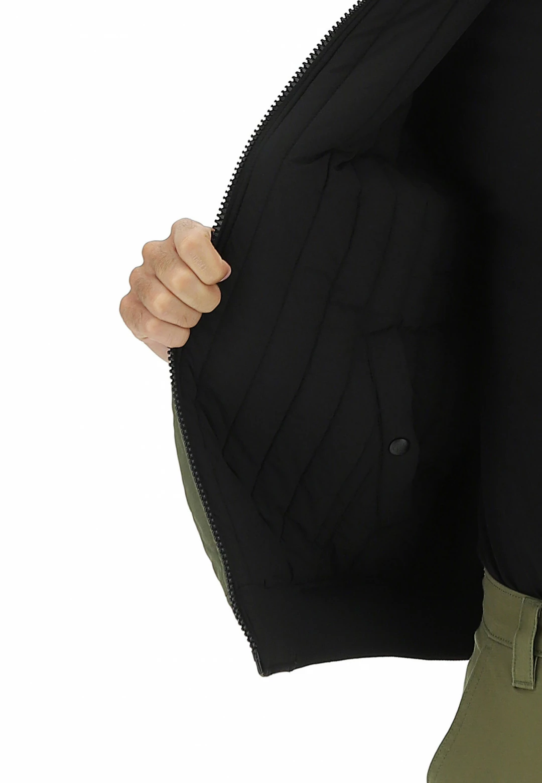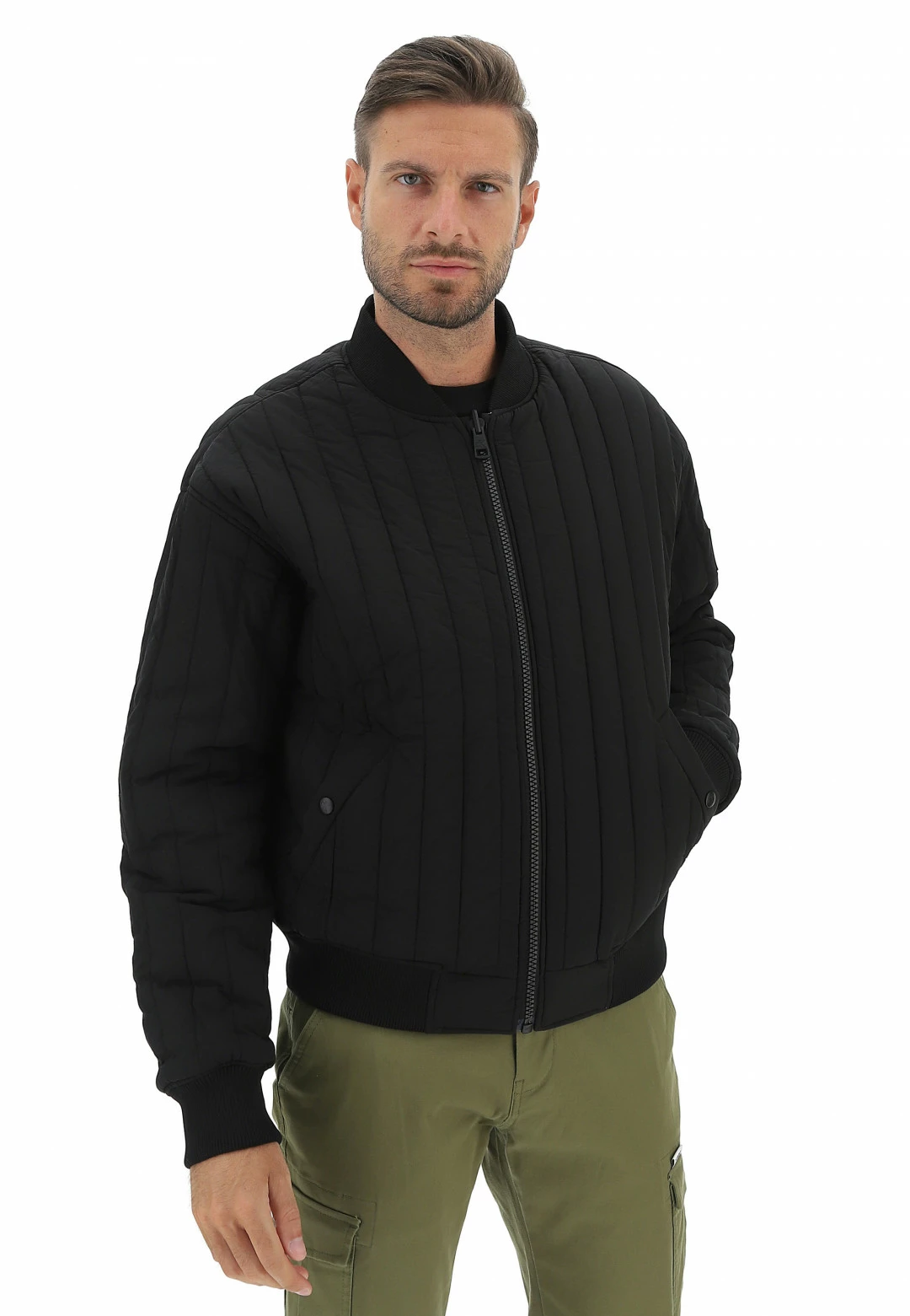 - Altre caratteristiche: bomber full zip imbottito e trapuntato interamente doblue-face, colletto, polsini e orlo in maglia a costine, stemma monogramma tono su tono nel petto.