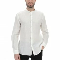 Camicia Age Uomo Con Collo Coreana 100% Lino Tinta Unita