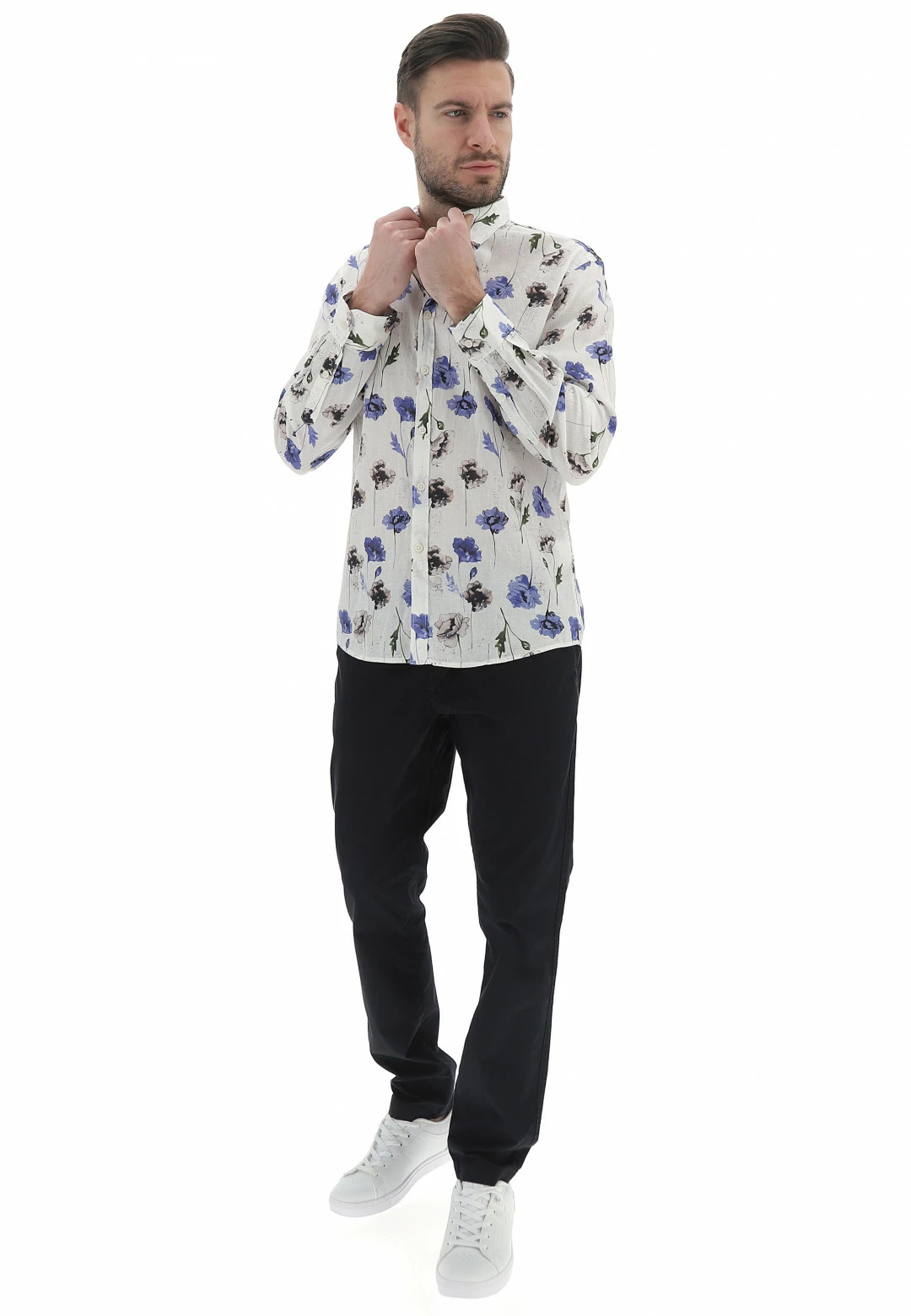 Camicia Age Uomo Con Fanatsia Floreale In Misto Lino E Cotone
