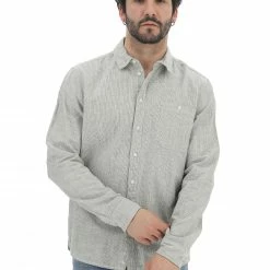 Camicia Blend Uomo Rigata All Over Con Taschino Sul Petto