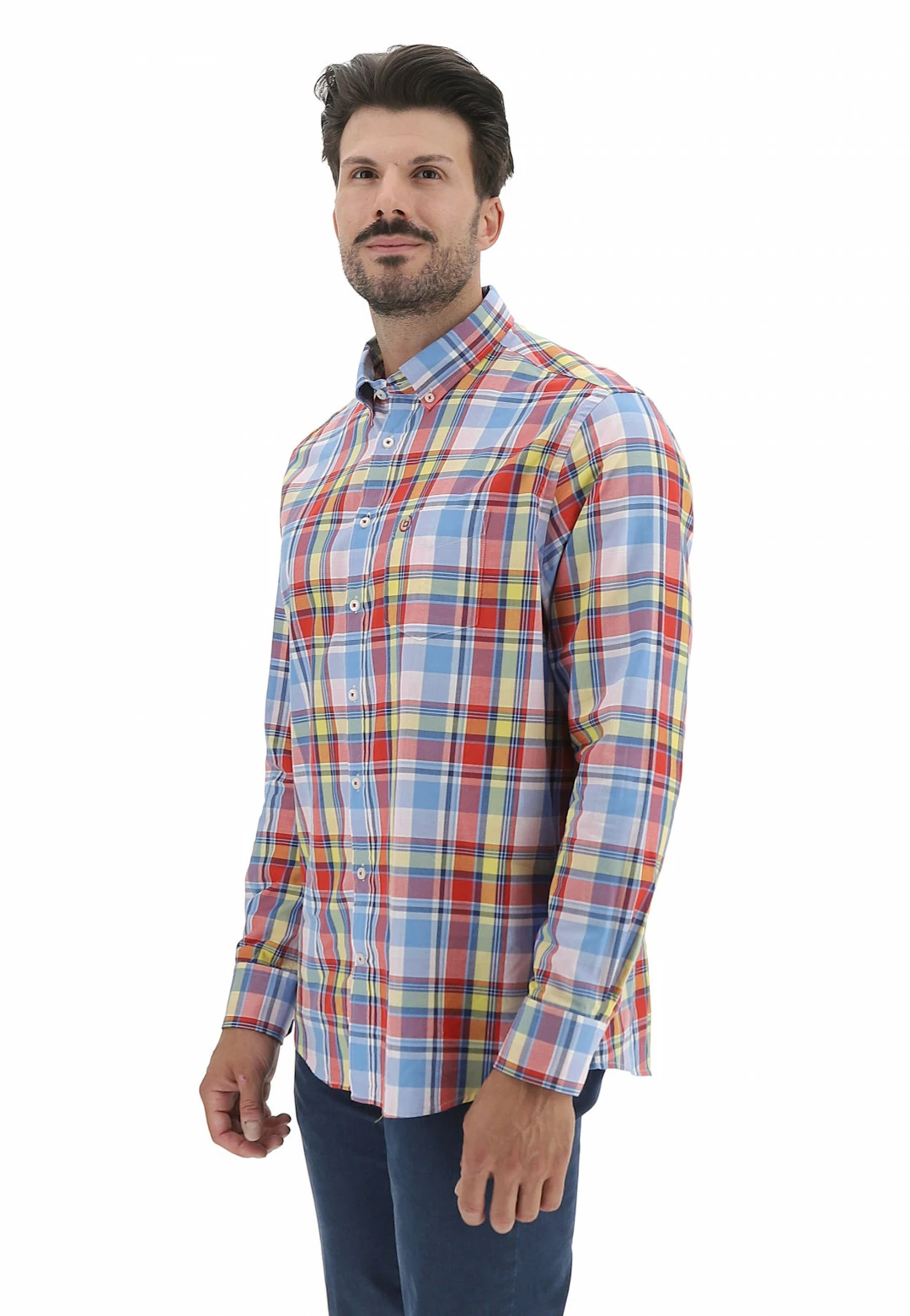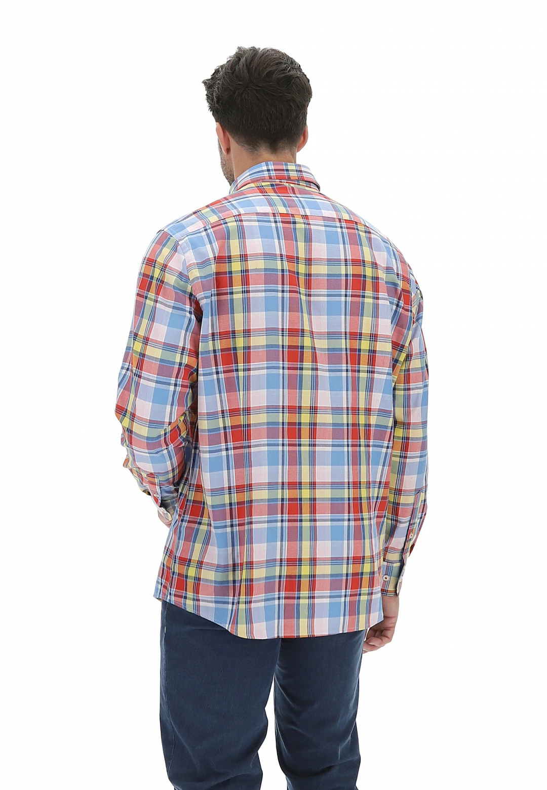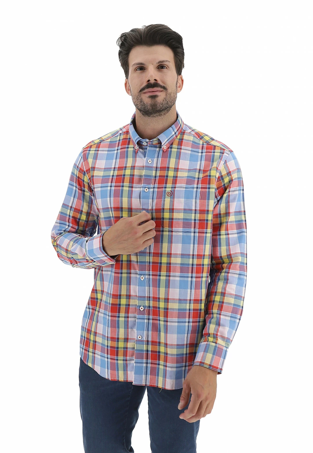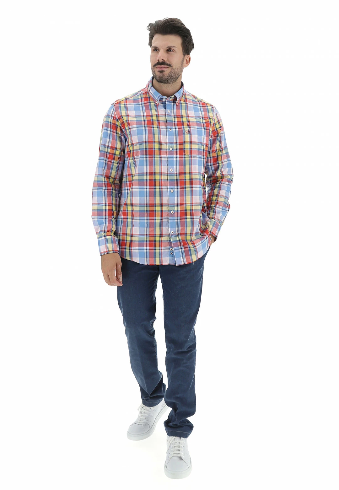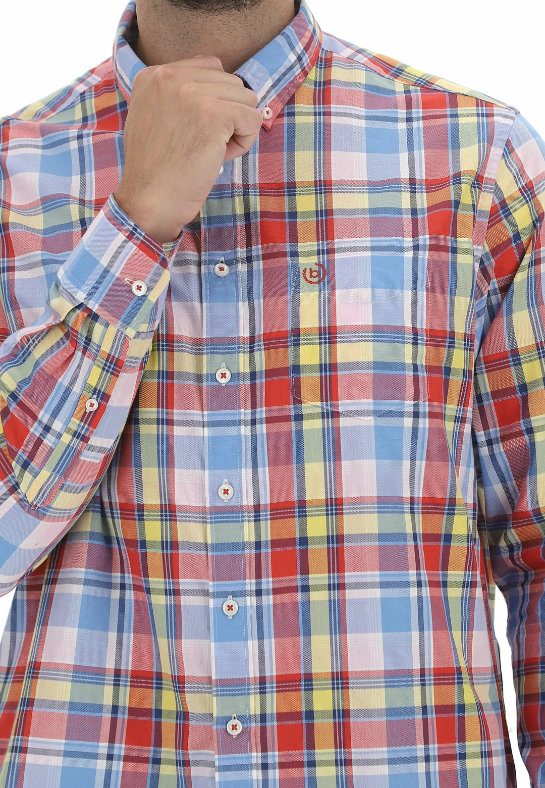 Camicia Bugatti Uomo In Cotone A Quadri Multicolor Con Taschino