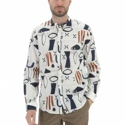 Camicia Coreana Age Uomo In Misto Lino E Cotone Con Fantasia Tribale