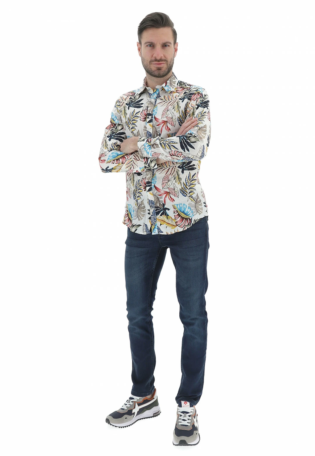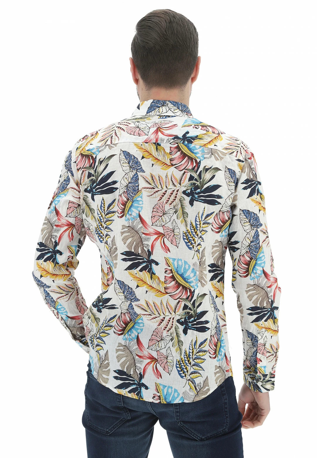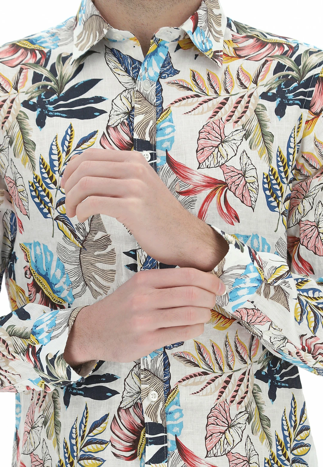 Camicia In Lino Gianni Lupo Fantasia Floreale All Over