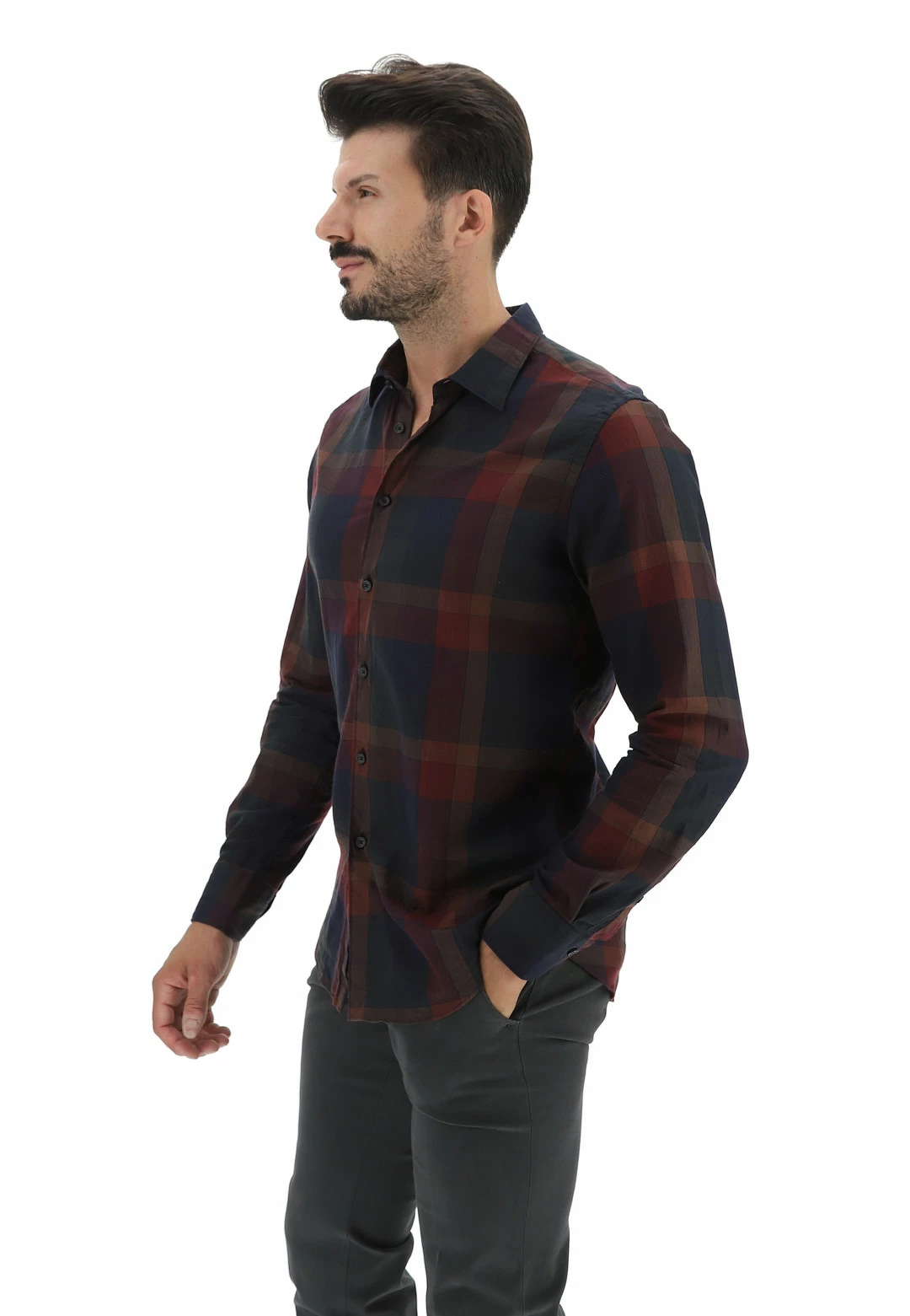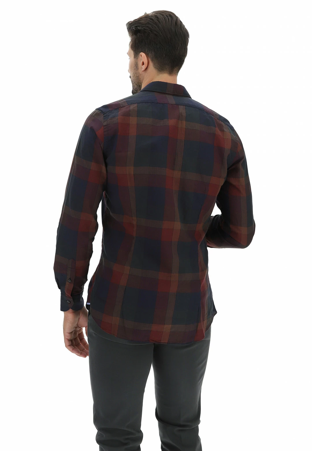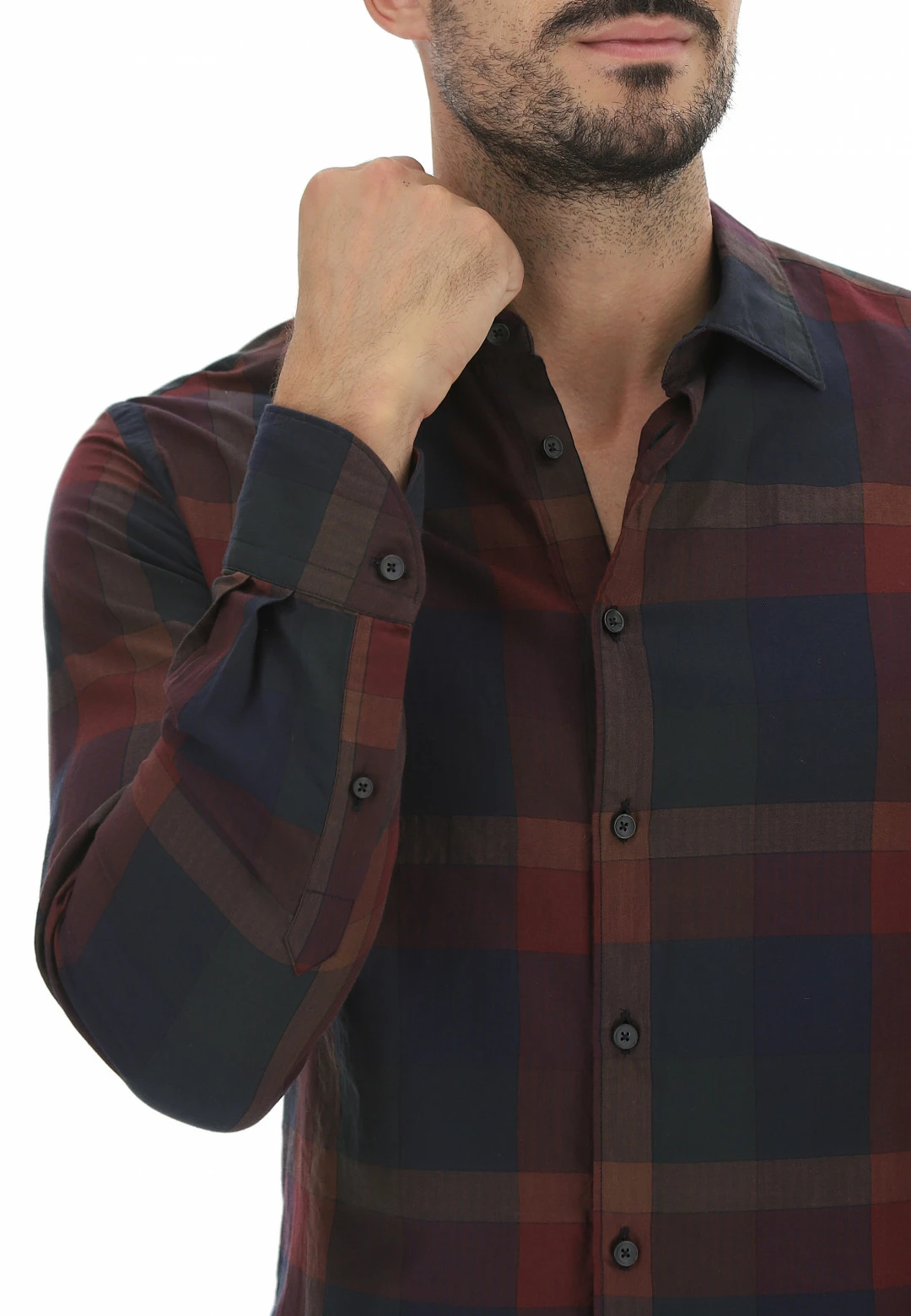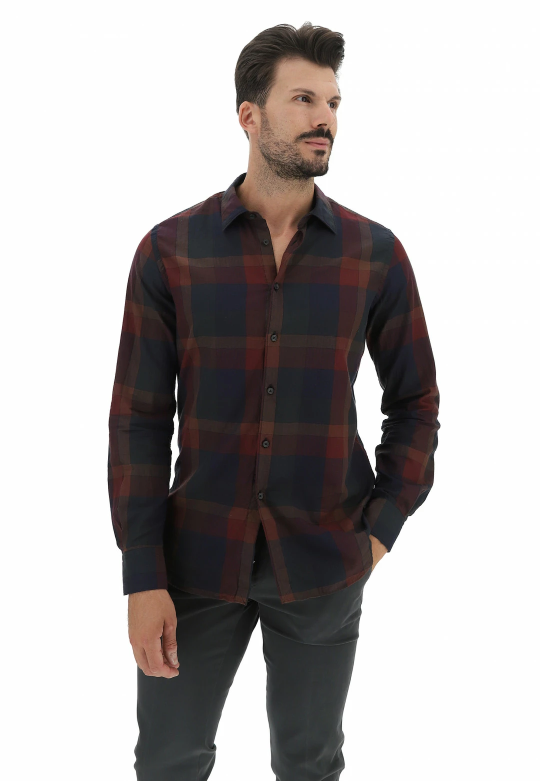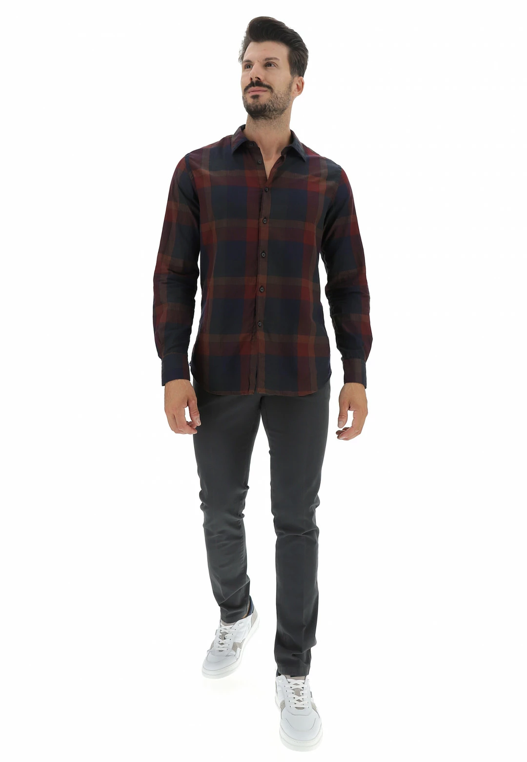 Camicia In Super Cotone Xacus A Quadri Slim Fit