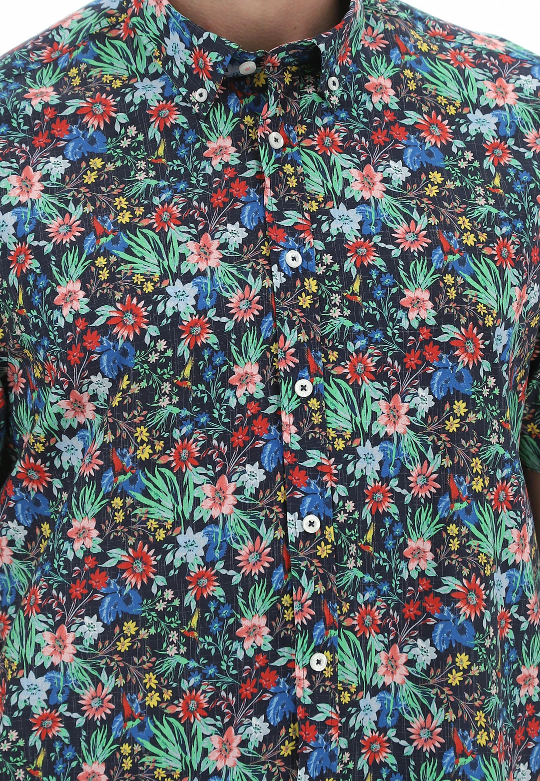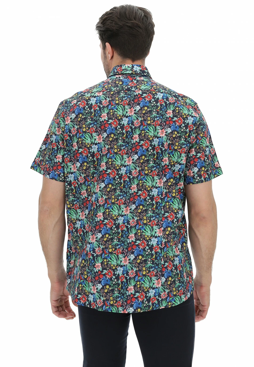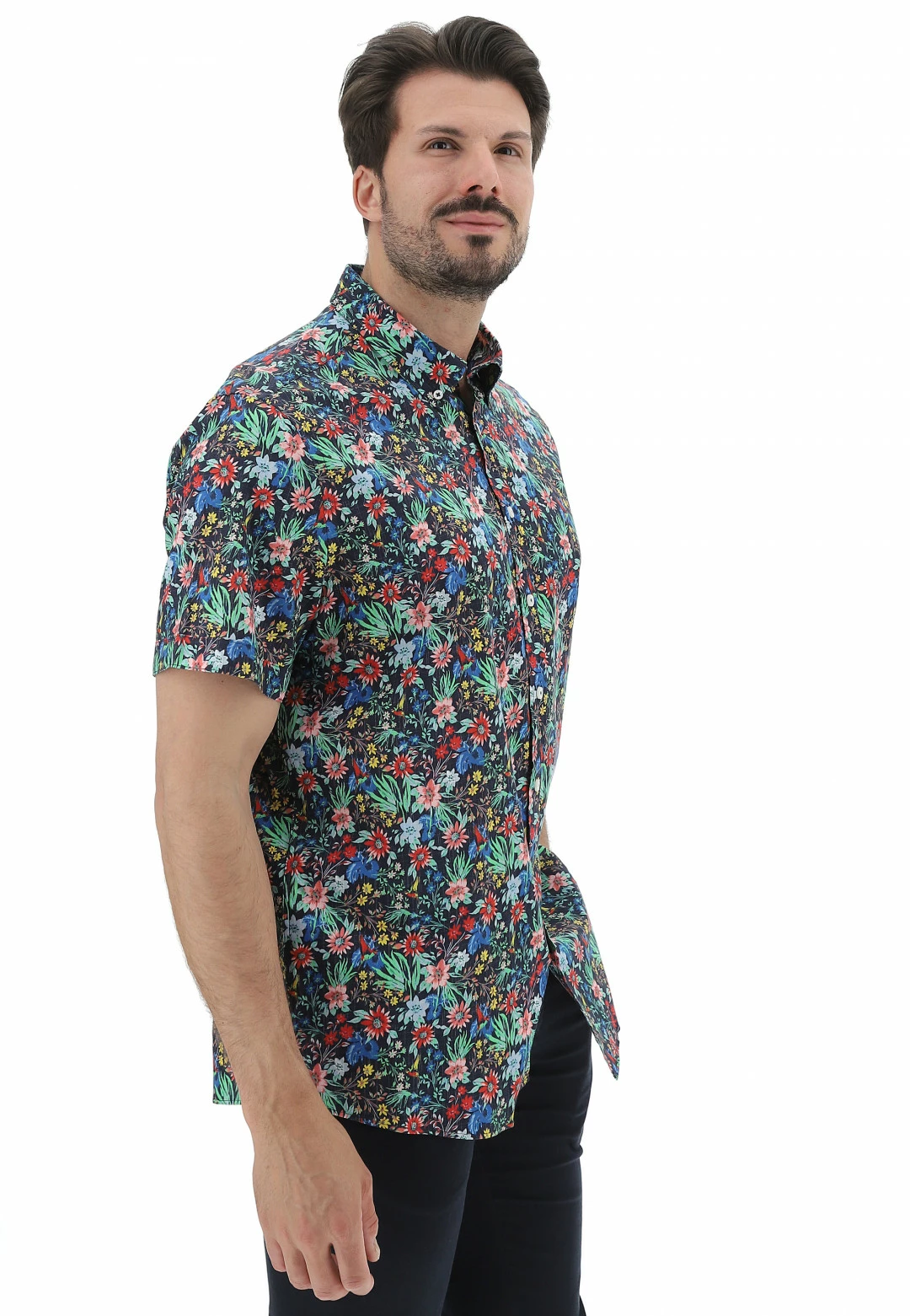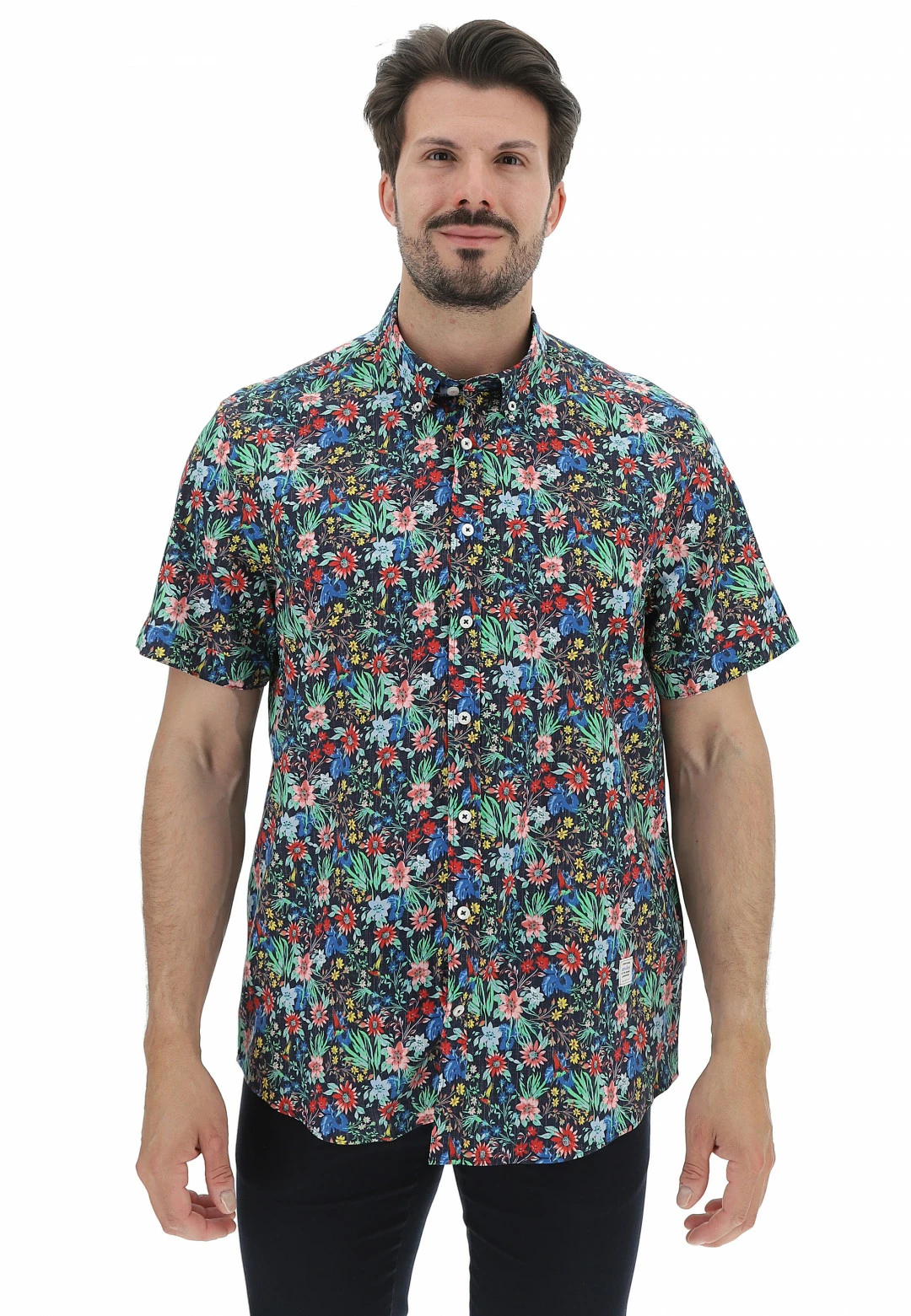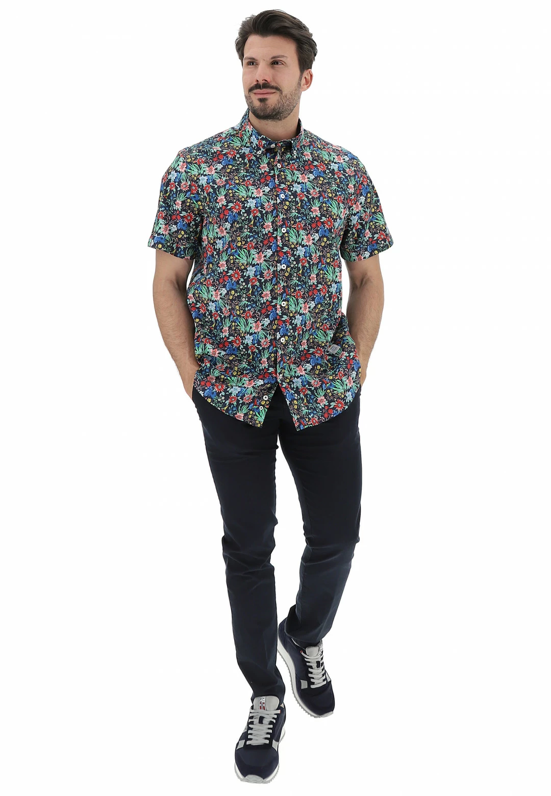 Camicia Manica Corta Bugatti In Fantasia Floreale Sfondo Blu
