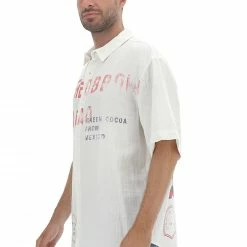 Camicia Maxi Catch Uomo Effetto Lino Con Scritte Sfumate Fronte E Retro