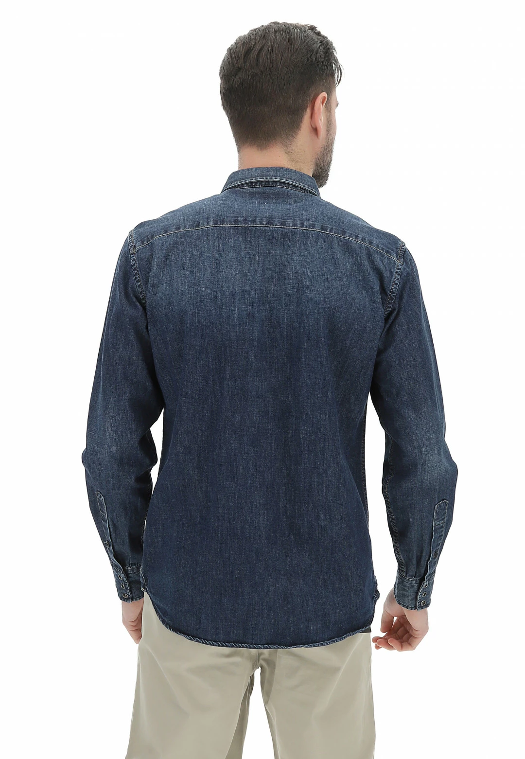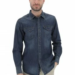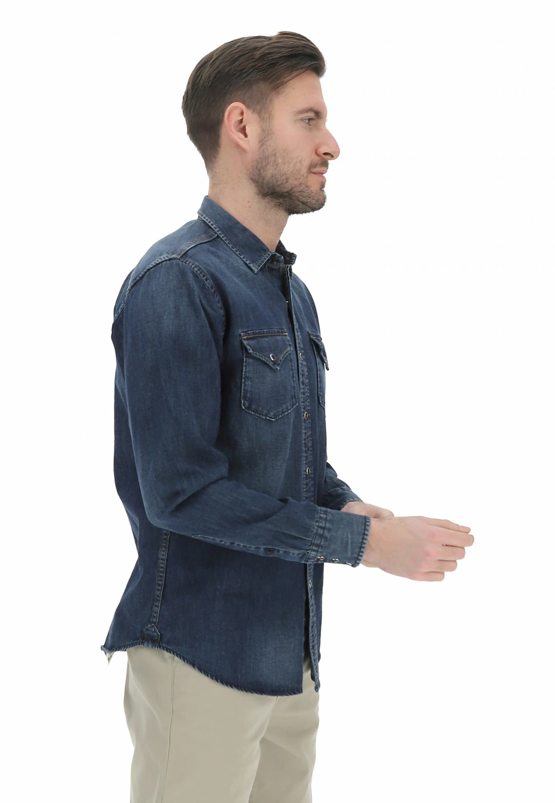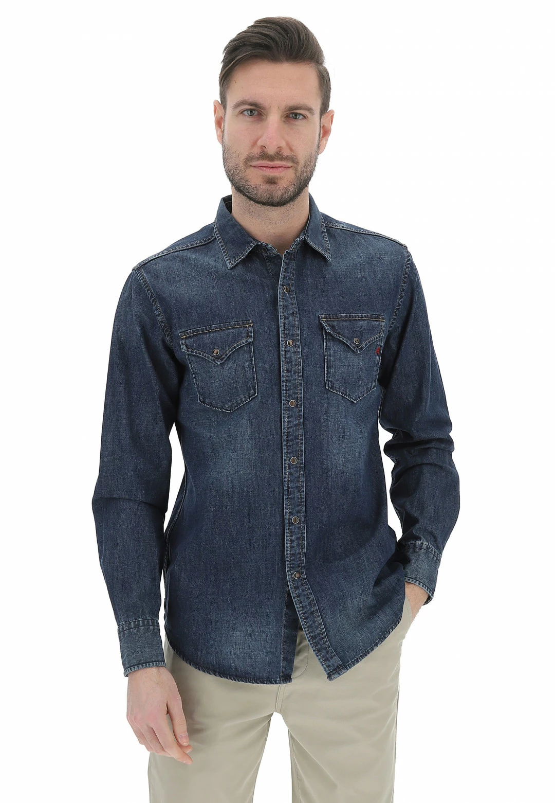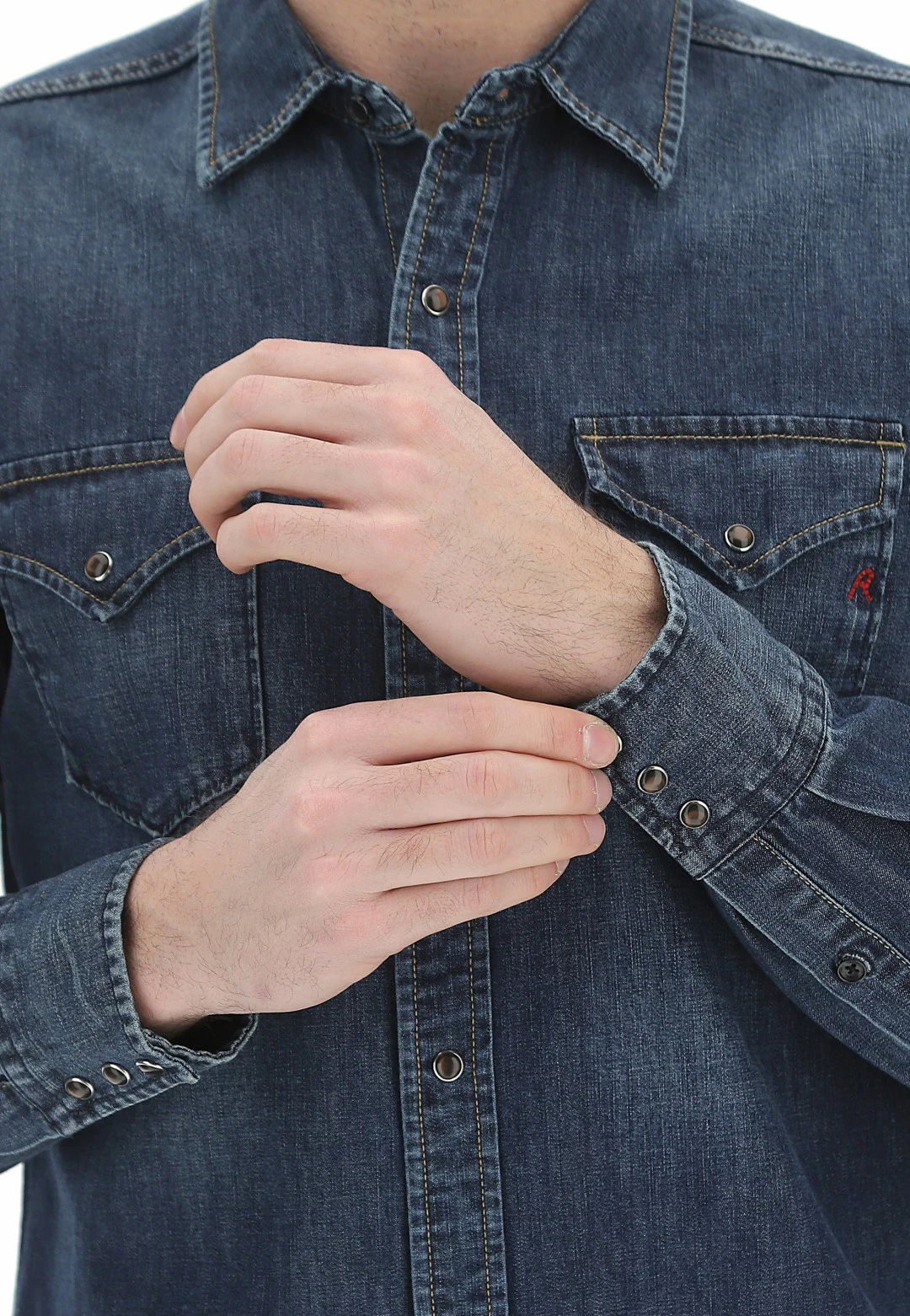 Camicia Replay Uomo In Denim Lavaggio Scuro Con Bottoni A Pressione