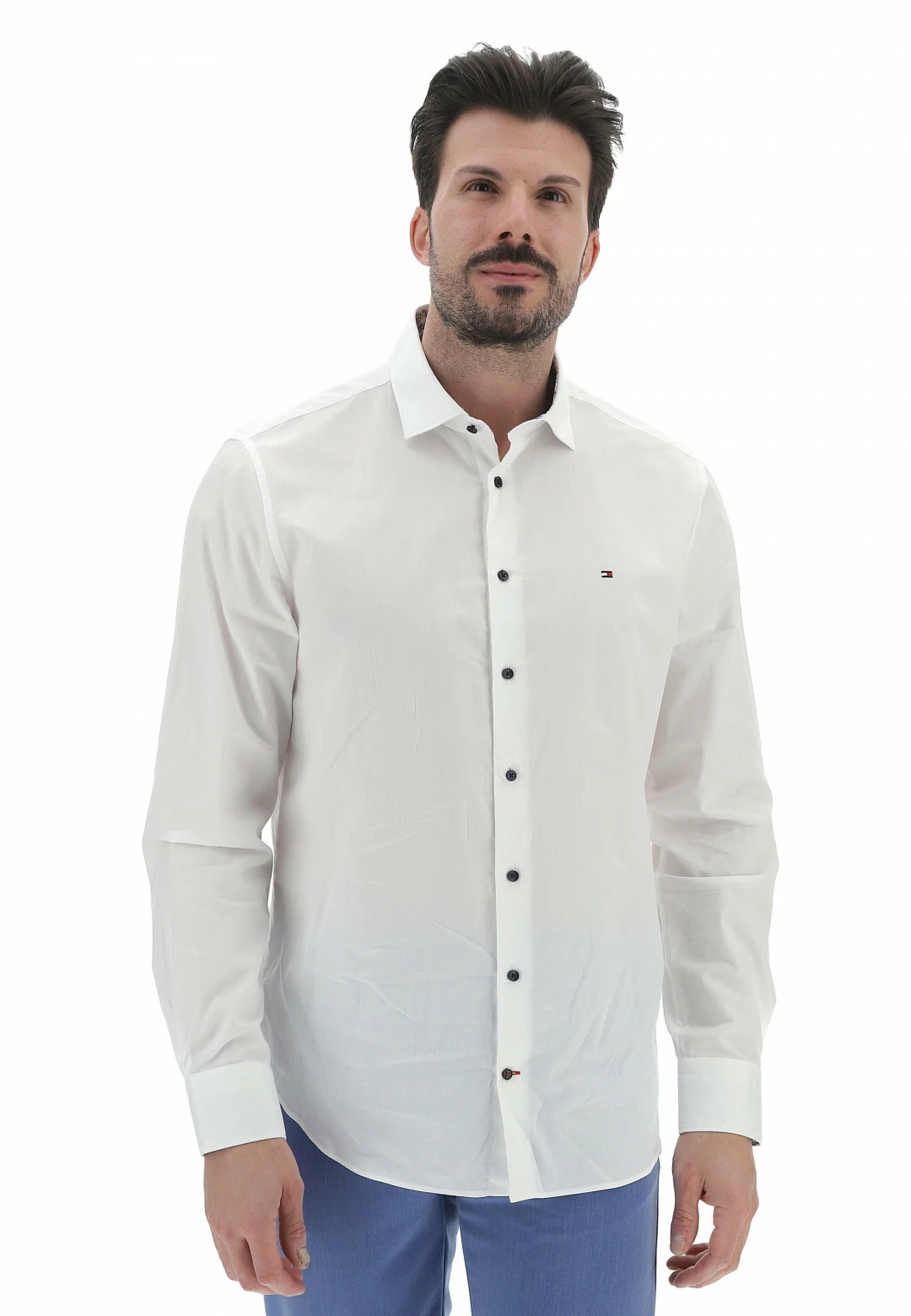 Camicia Uomo Tommy Hilfiger Mw0mw29136 Con Logo Piccolo Ricamato E Bottoni A Contrasto