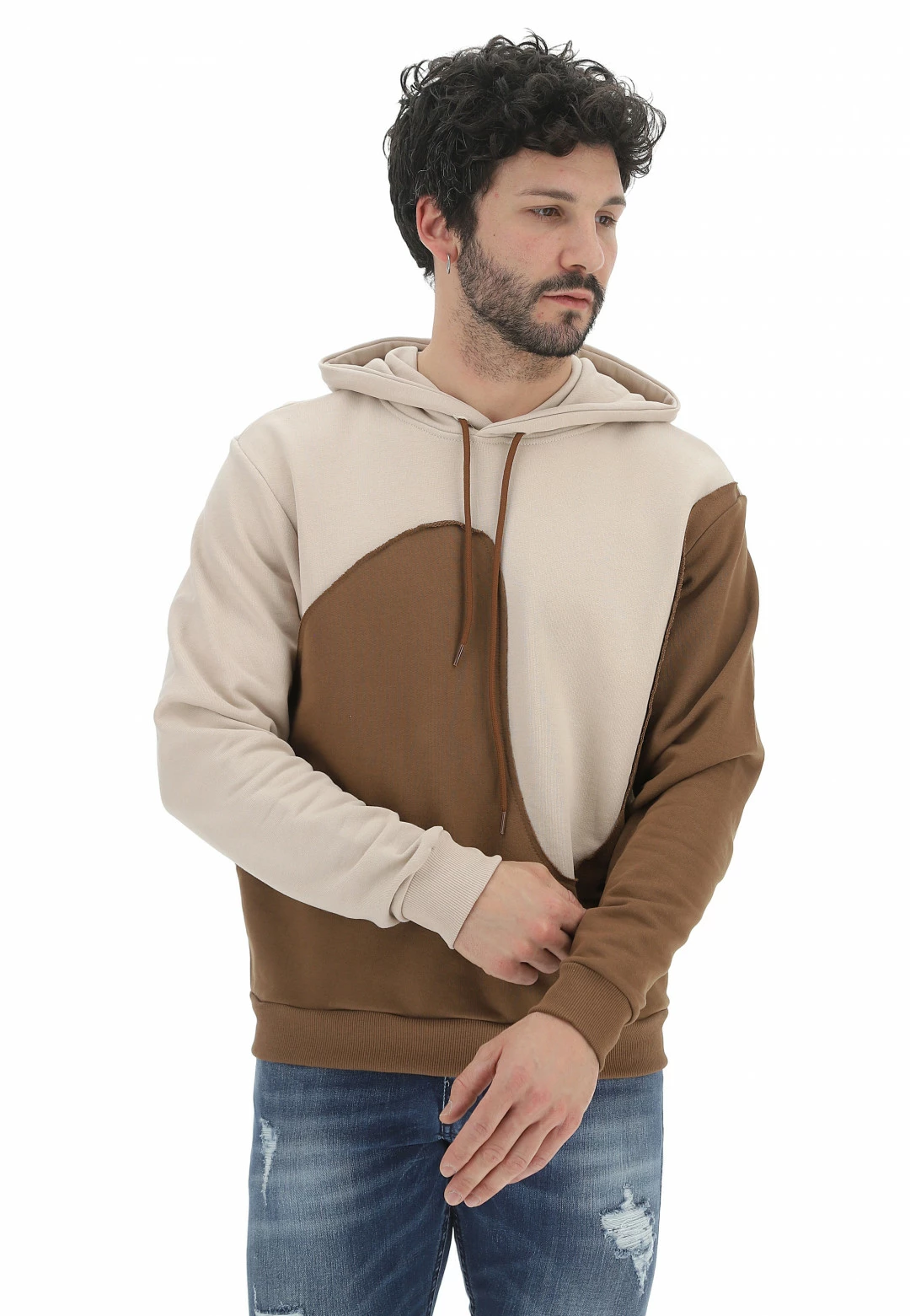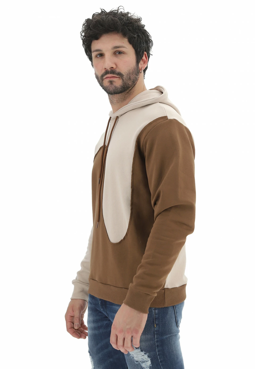 Felpa Con Cappuccio Age Uomo Made In Italy Bicolor Con Cuciture A Vista