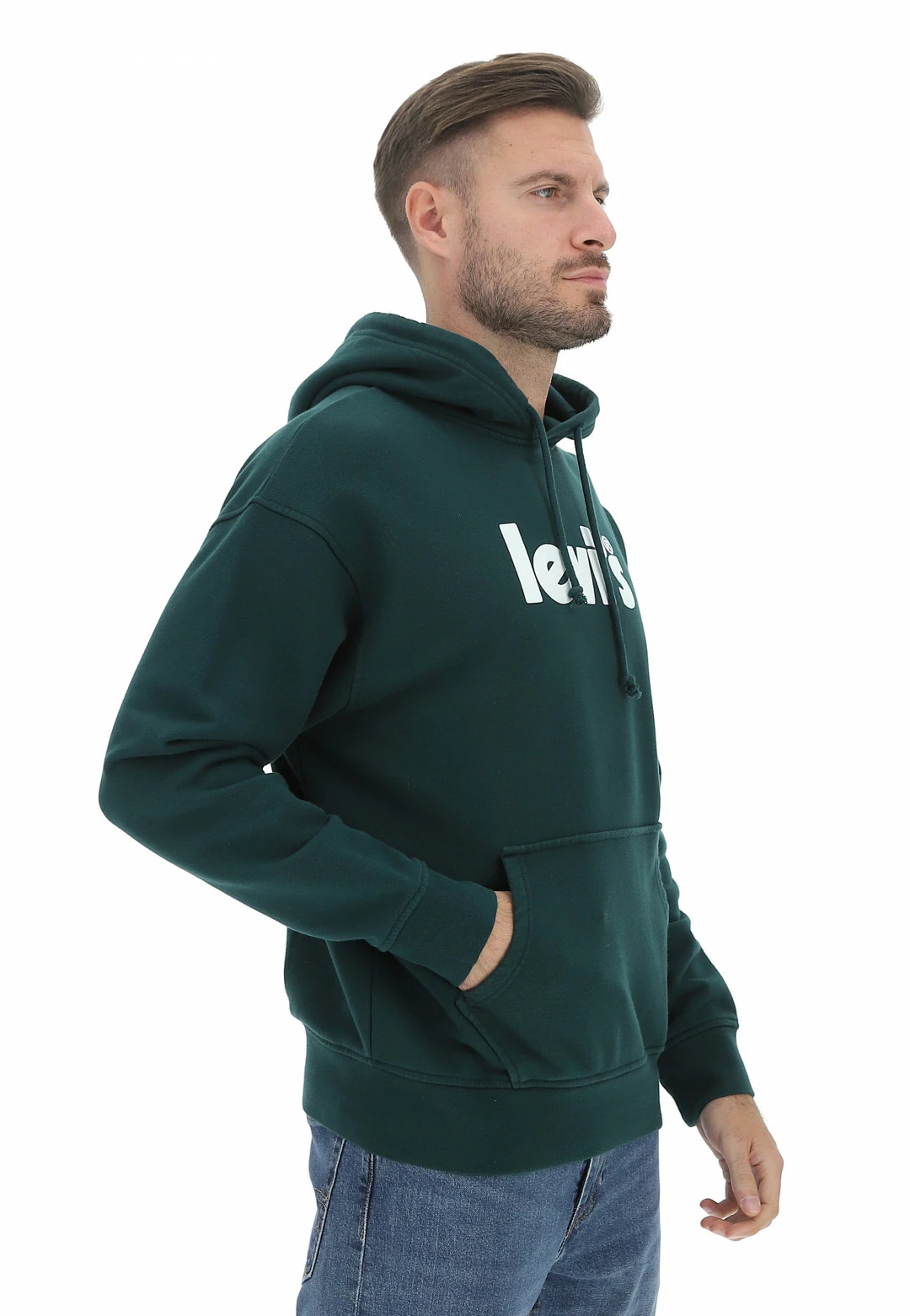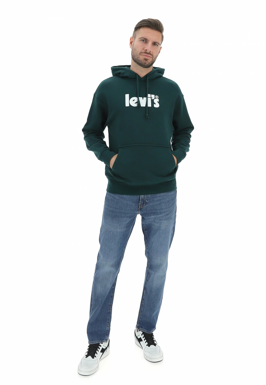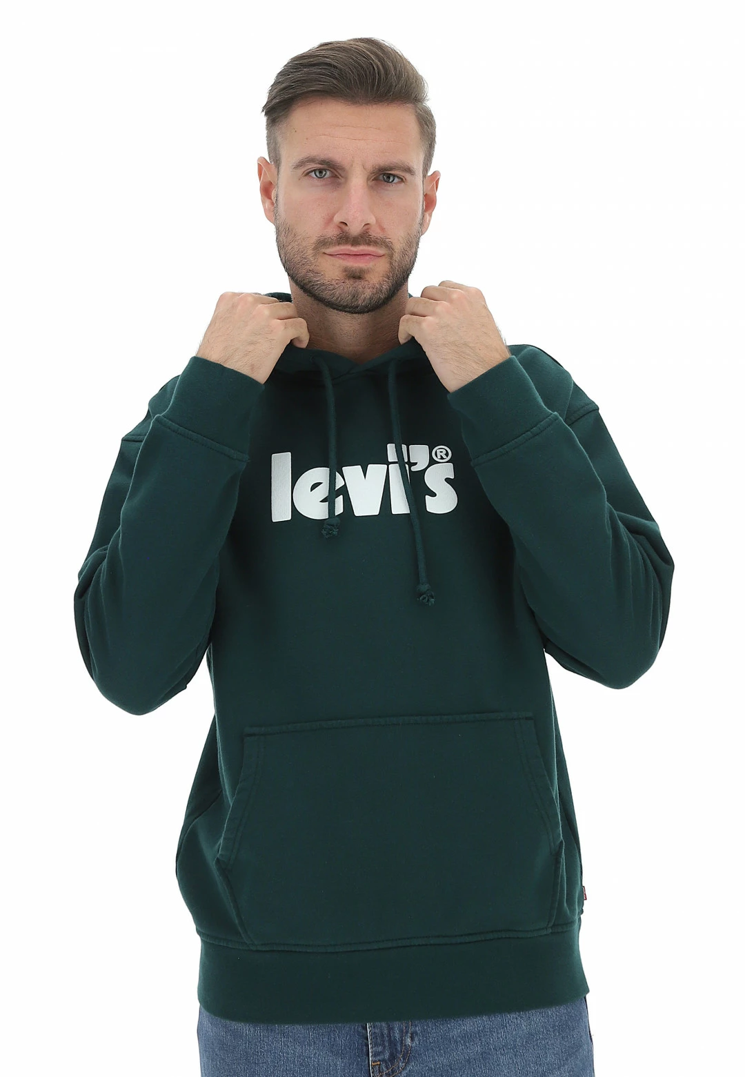 Felpa Garzata Levi’s 384790112 Con Cappuccio E Logo A Contrasto Centrale In Rilievo