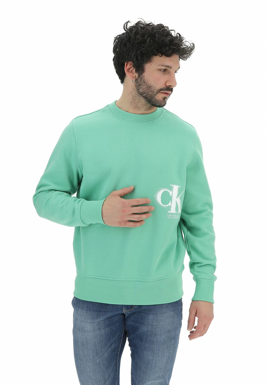 Felpa Girocollo Calvin Klein Jeans Uomo Con Logo Spruzzato Sul Fianco