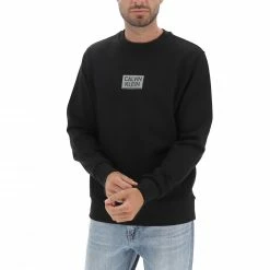 Felpa Girocollo Calvin Klein Uomo Con Riquadro Logo Centrale