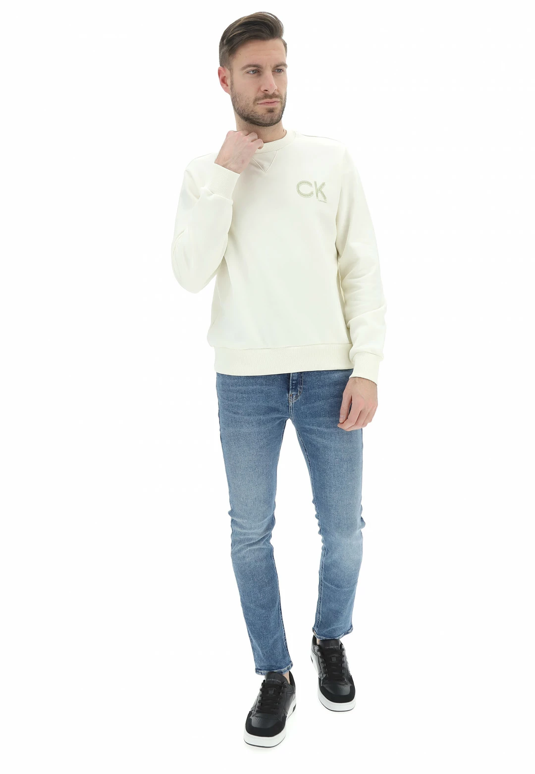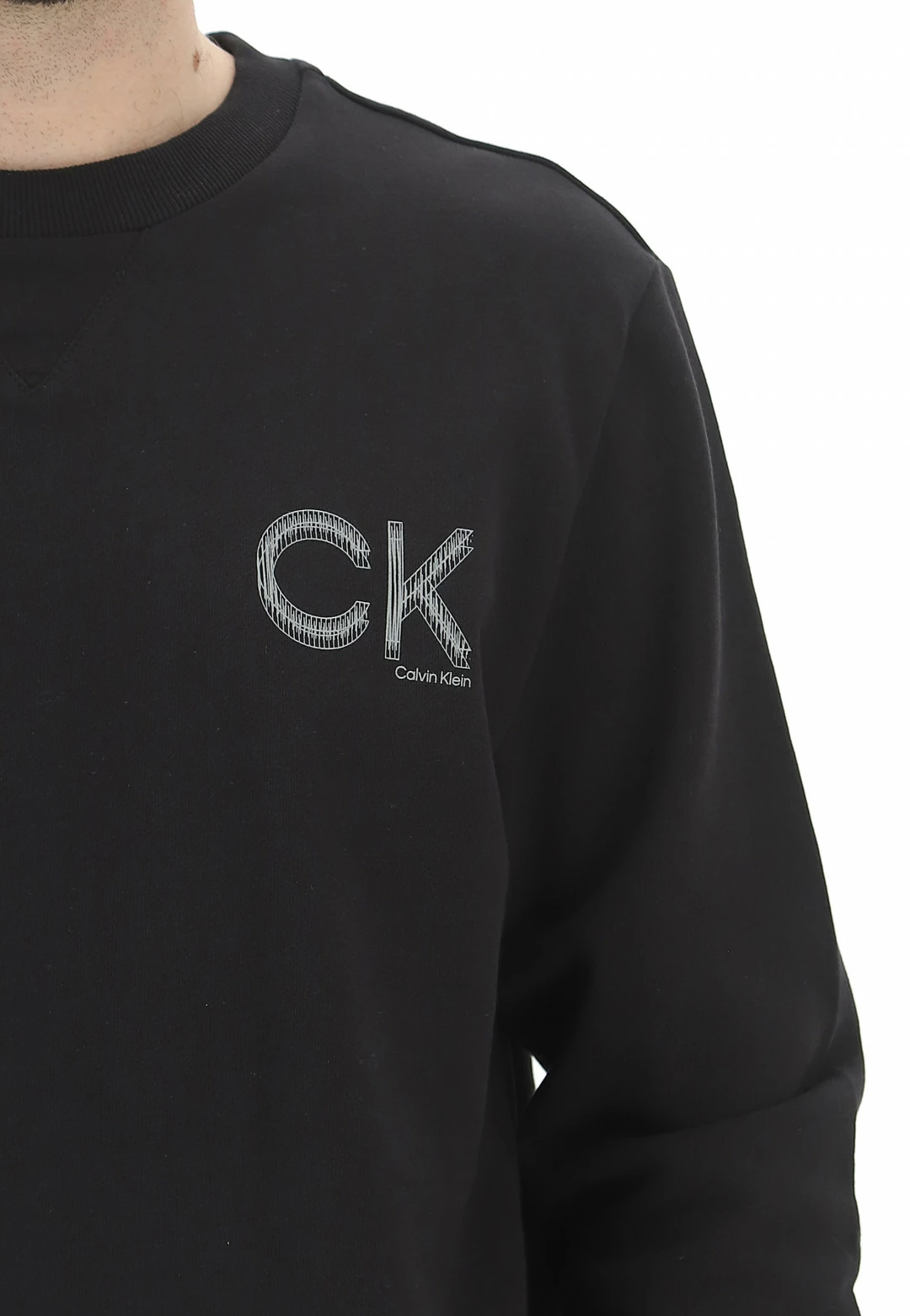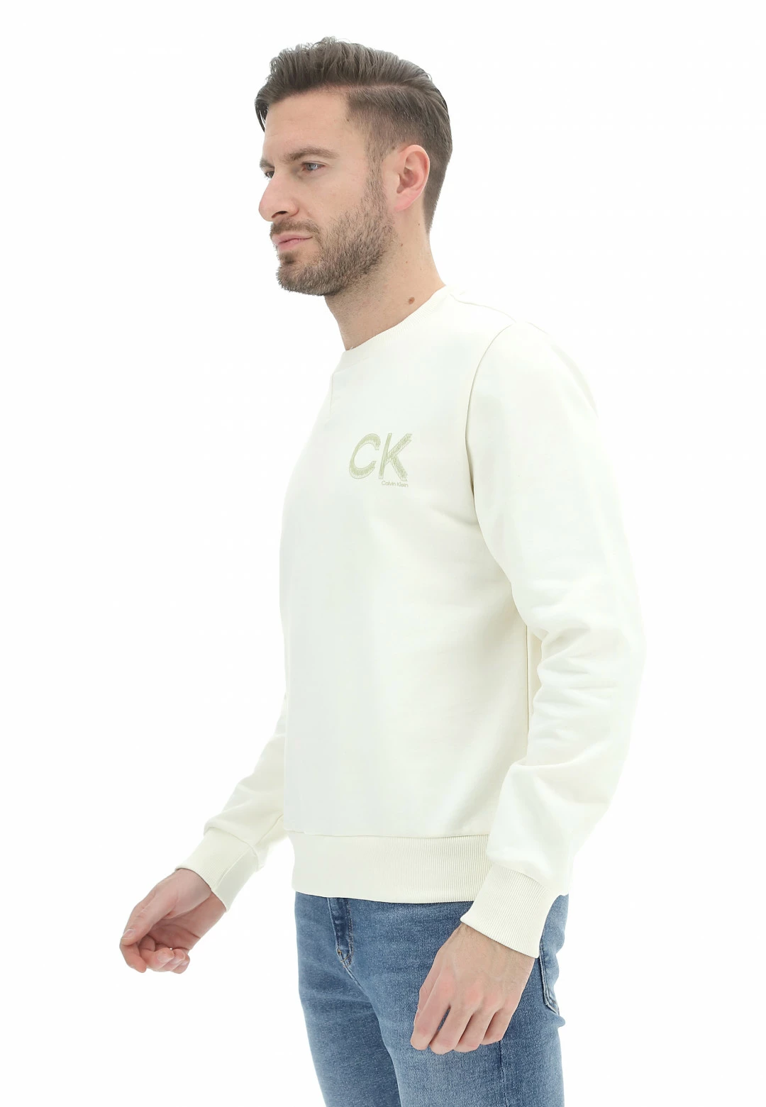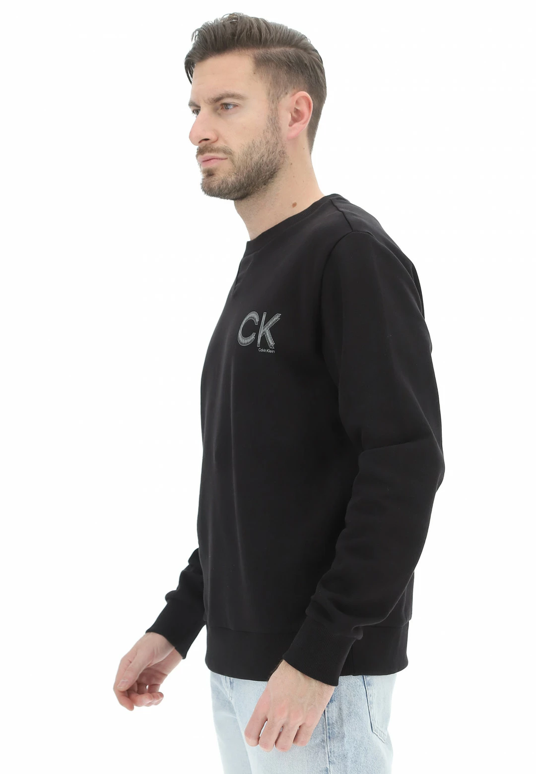 Felpa Girocollo Calvin Klein Uomo In Cotone Tinta Unita Con Logo Sul Petto