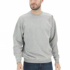 Felpa Girocollo Con Rotture Age In Cotone Garzato