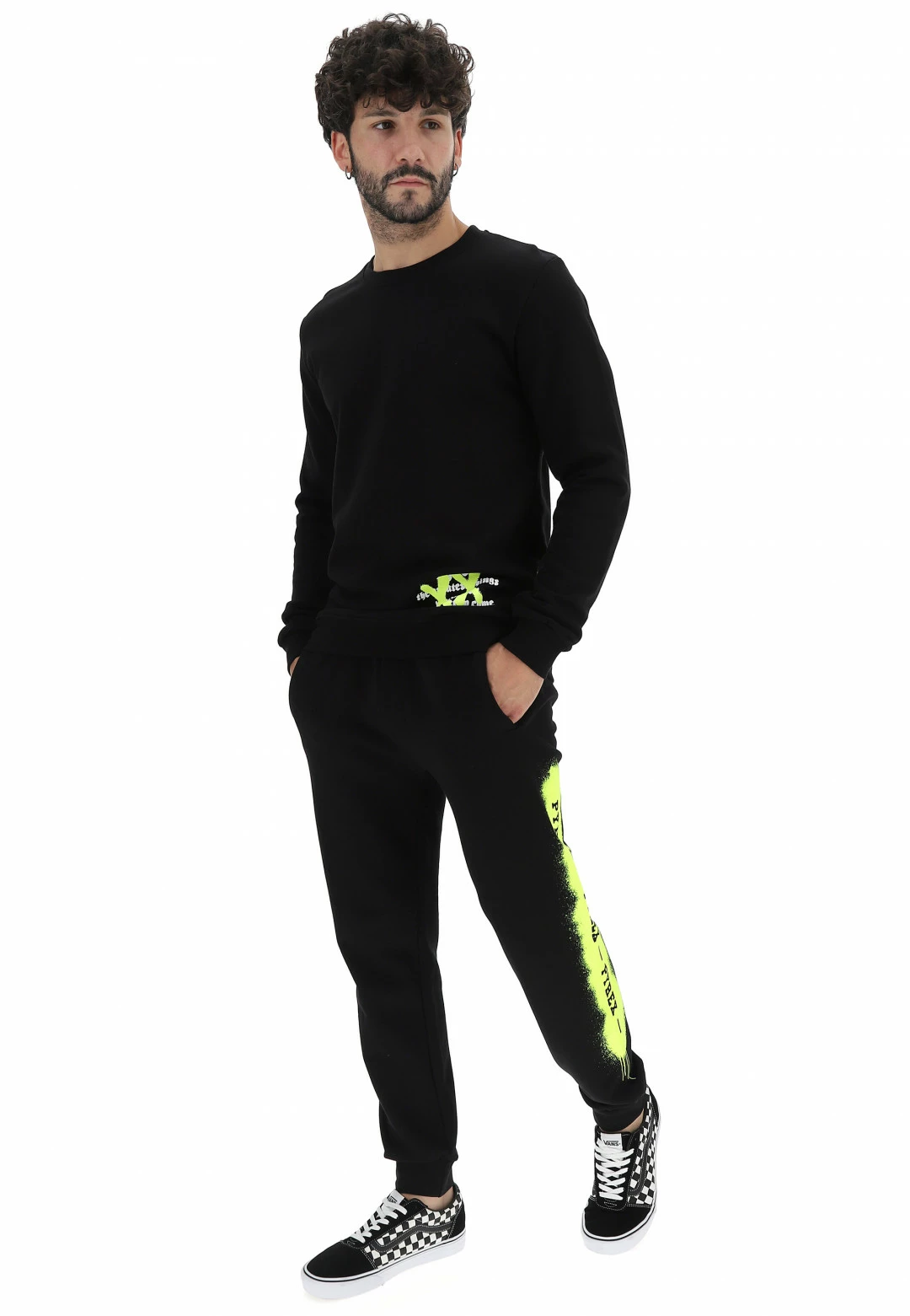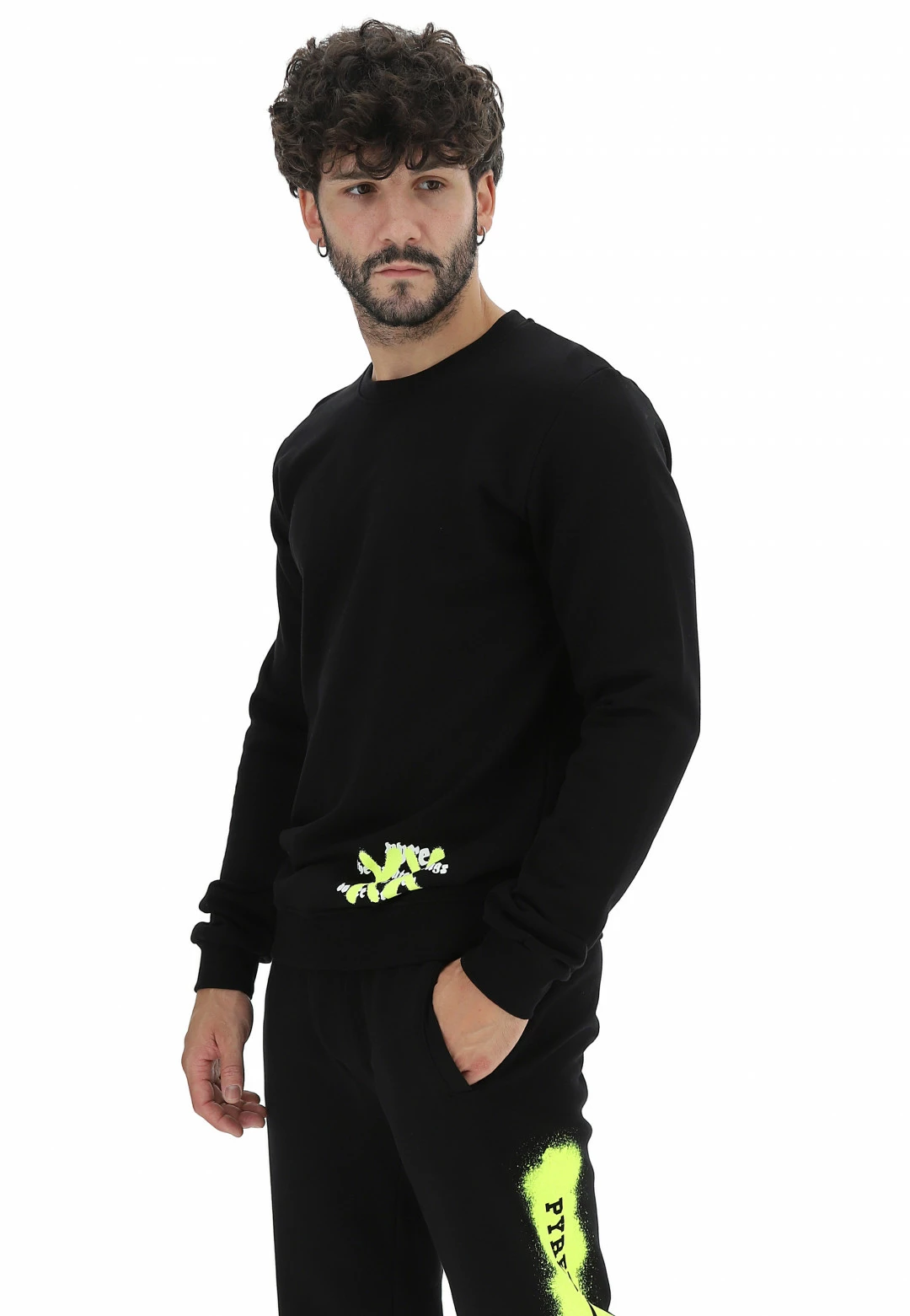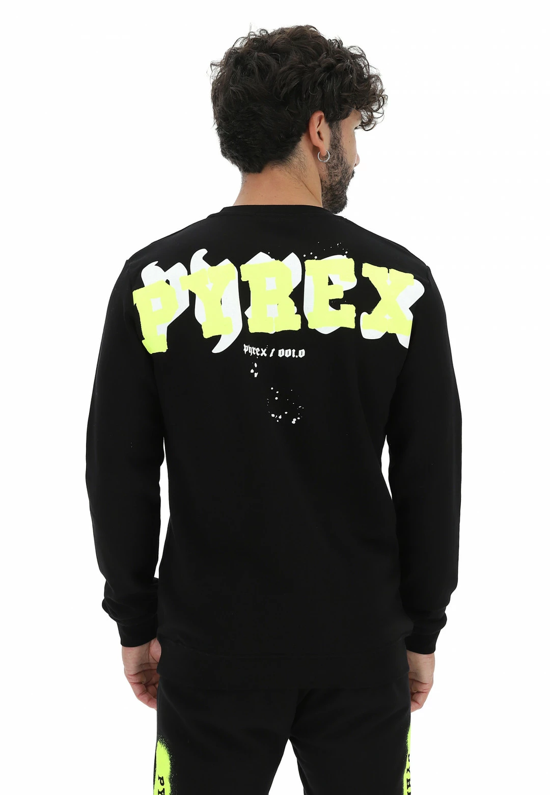 Felpa Girocollo Garzata Pyrex 42529 Con Scritta Fluo Retro