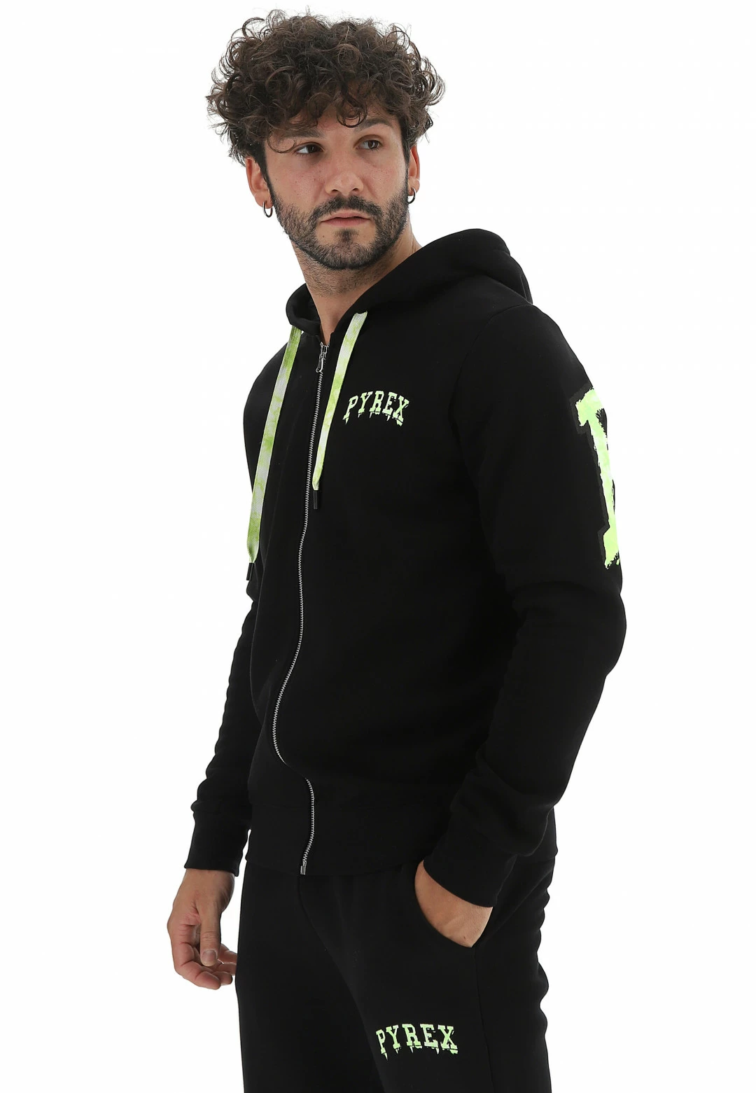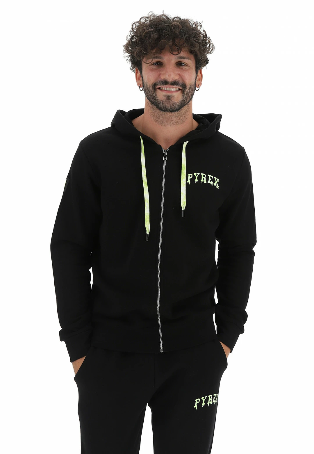 Felpa Pyrex Con Zip Cappuccio E Logo Gommato Fluo
