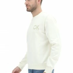 Felpa Girocollo Calvin Klein Uomo Con Logo In Rilievo A Contrasto