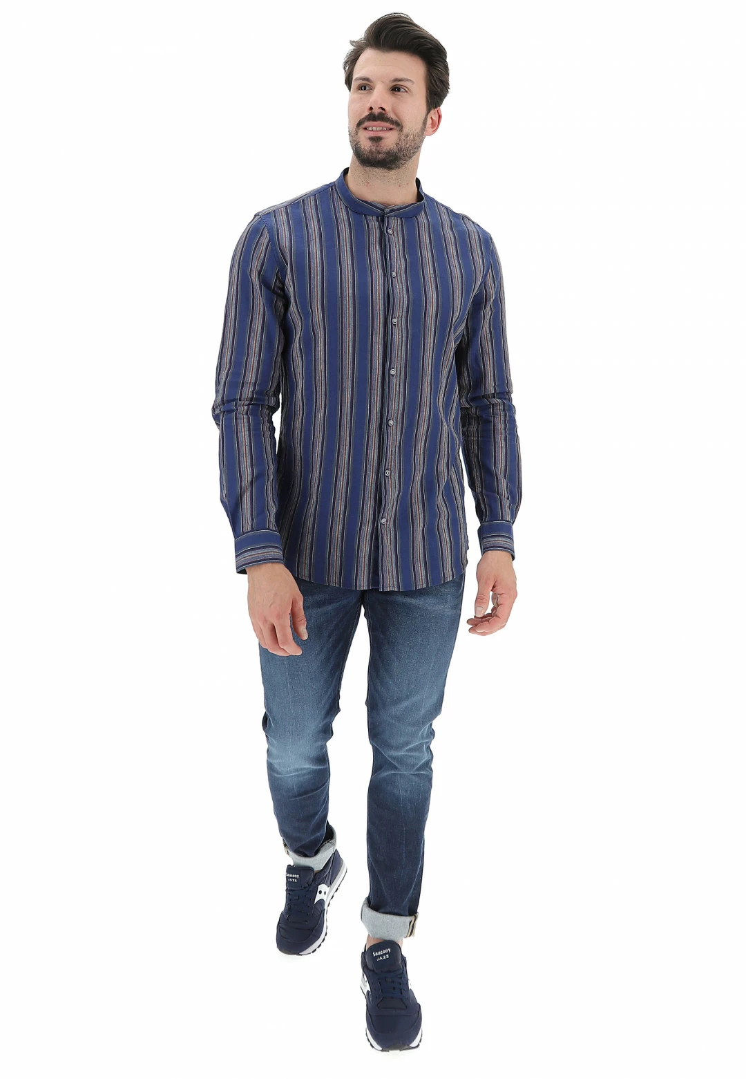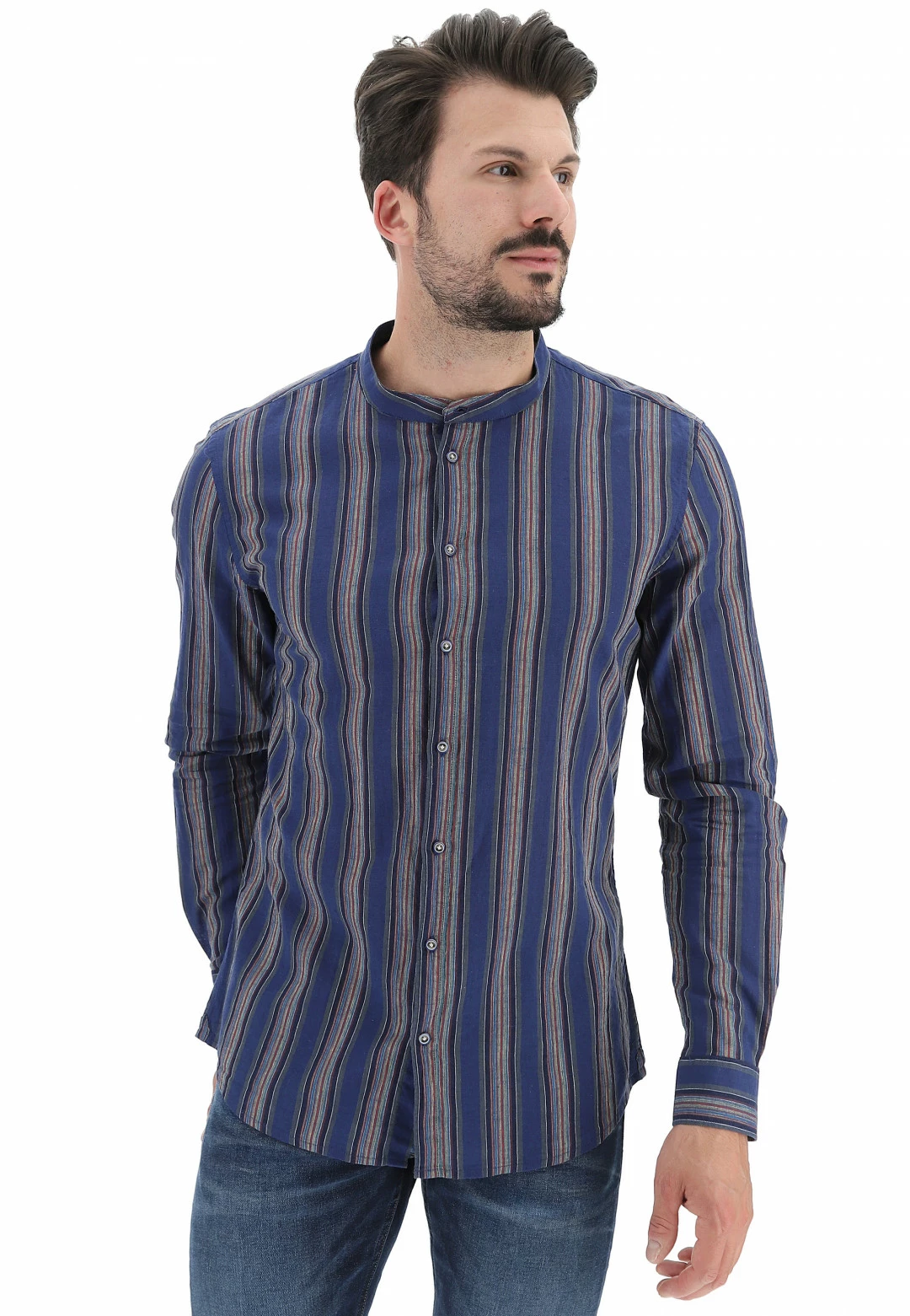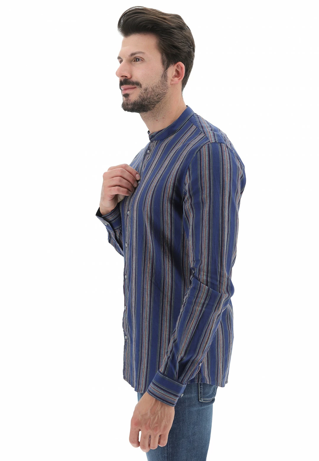 Gaudi Camicia Coreana Misto Lino Rigata Gaudì Regular Fit