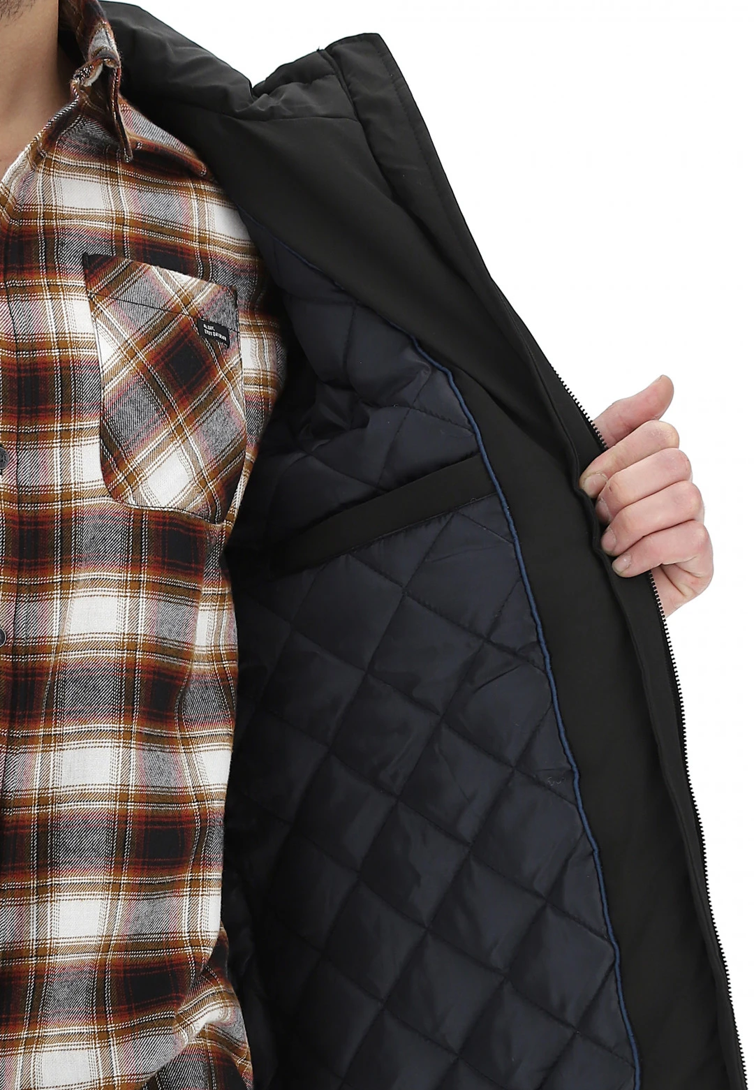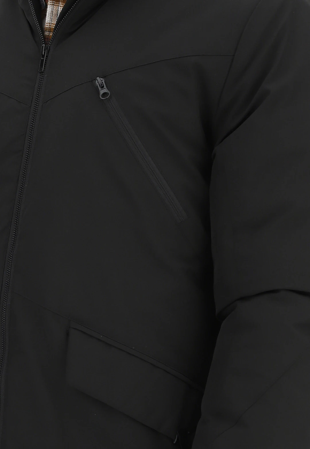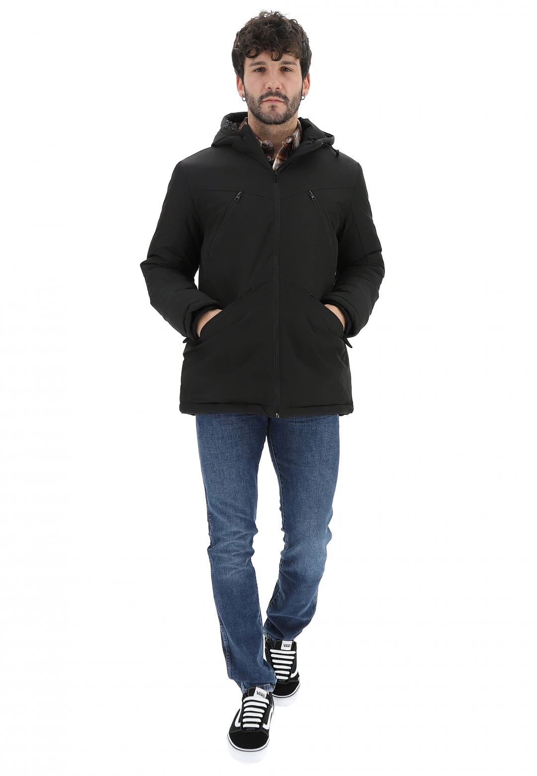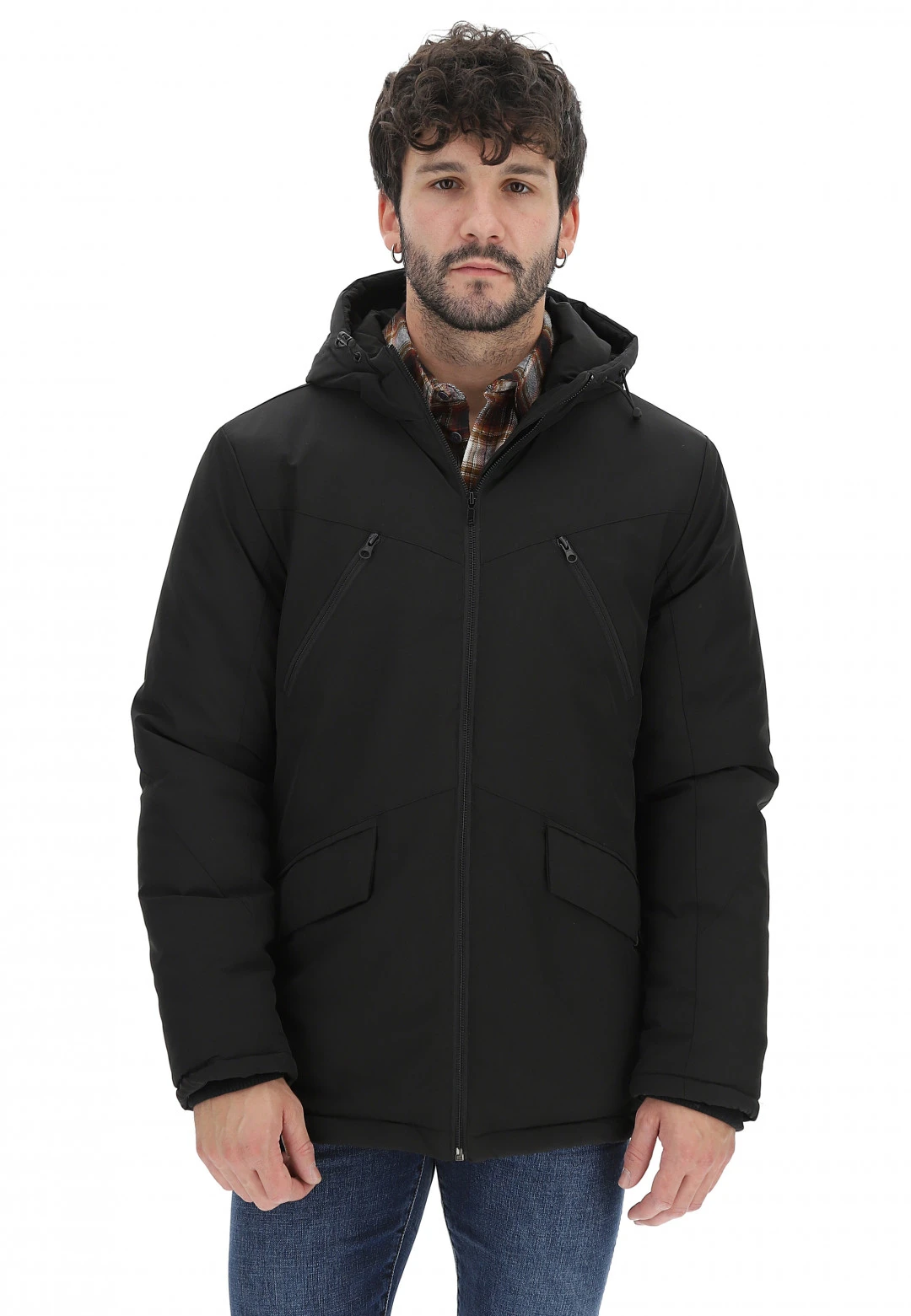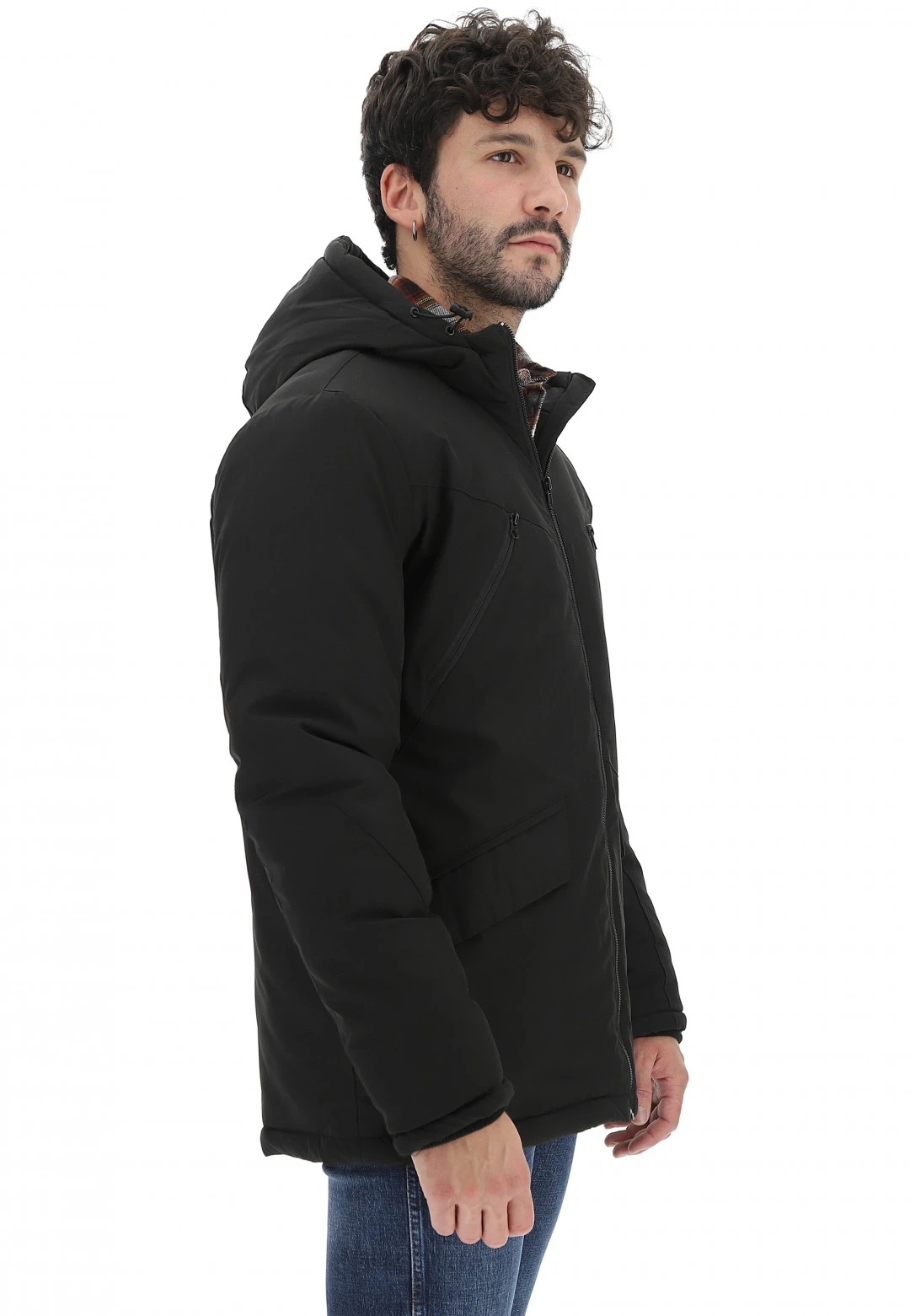 - Altre caratteristiche: polsini in costina elasticizzata, tasche laterali con chiusura a calamita, tasche laterali superiori con zip, cappuccio regolabile tramite coulisse