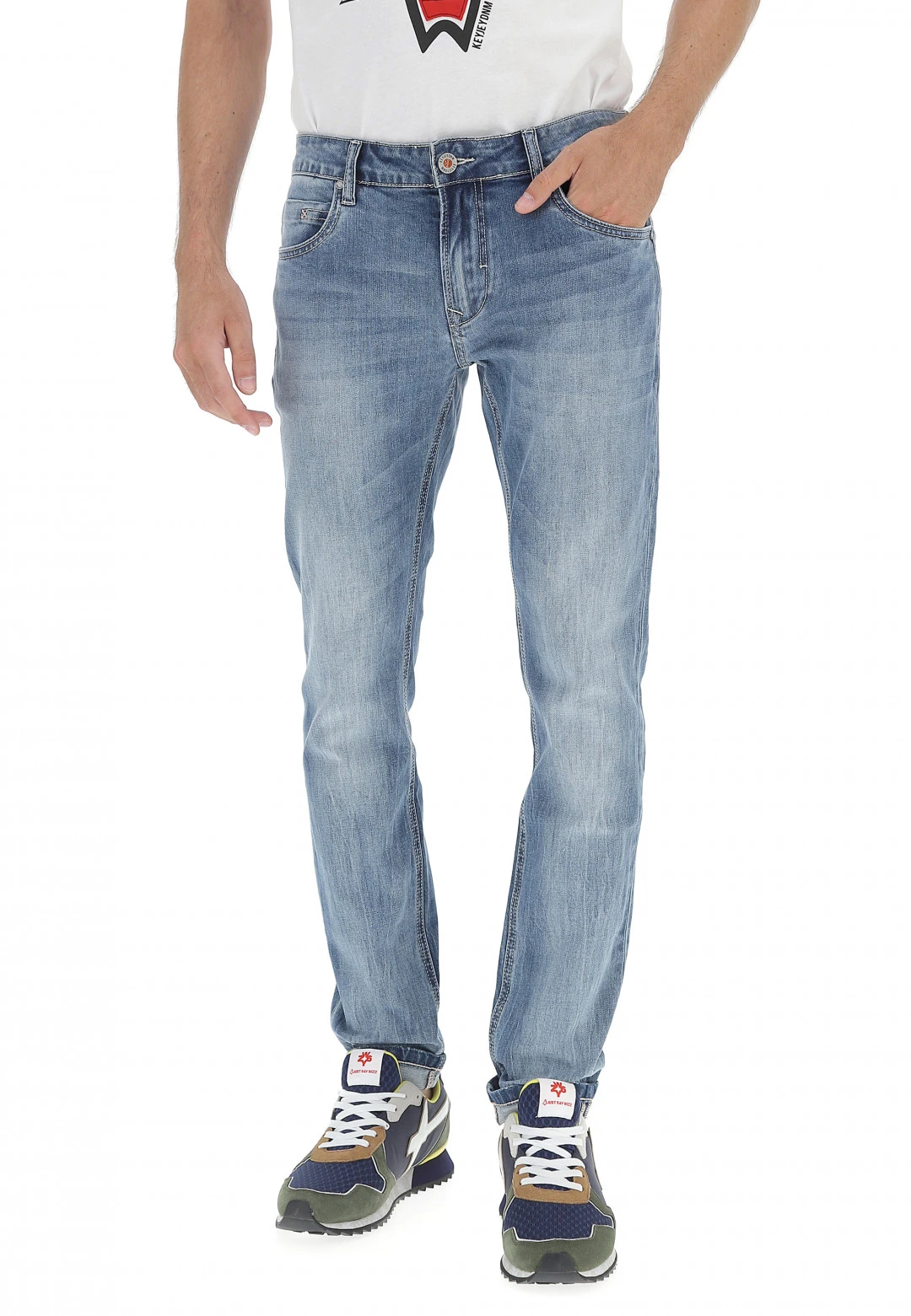 Jeans Uomo Key Jey Slim Fit Stretch Effetto Used