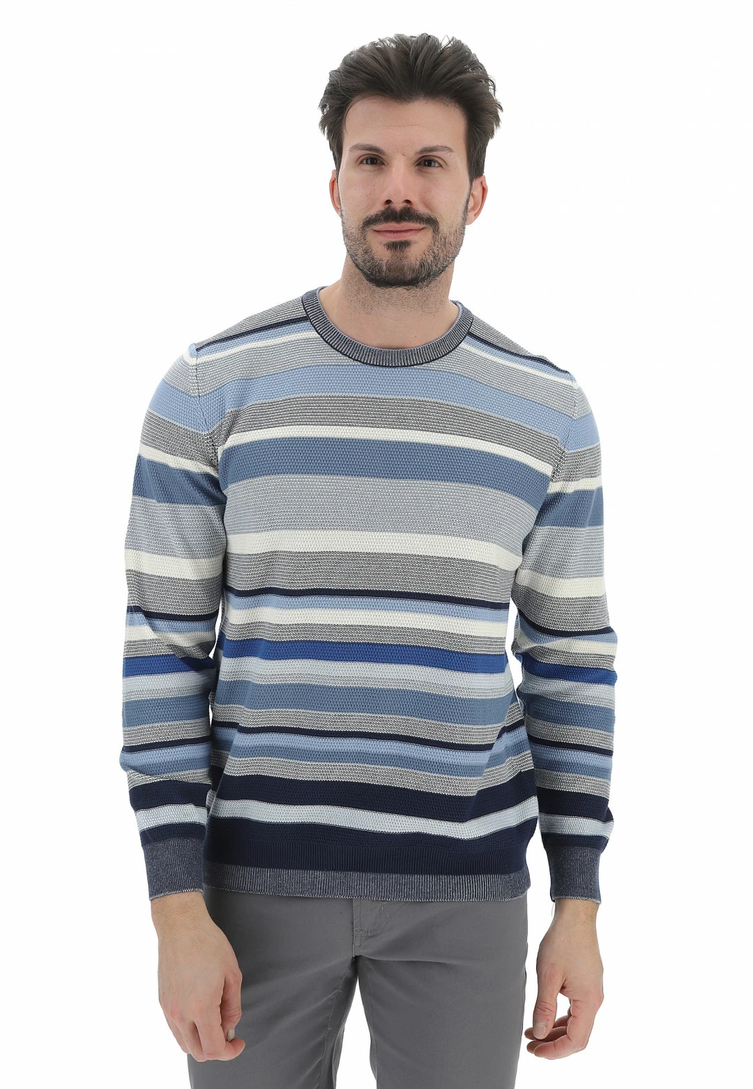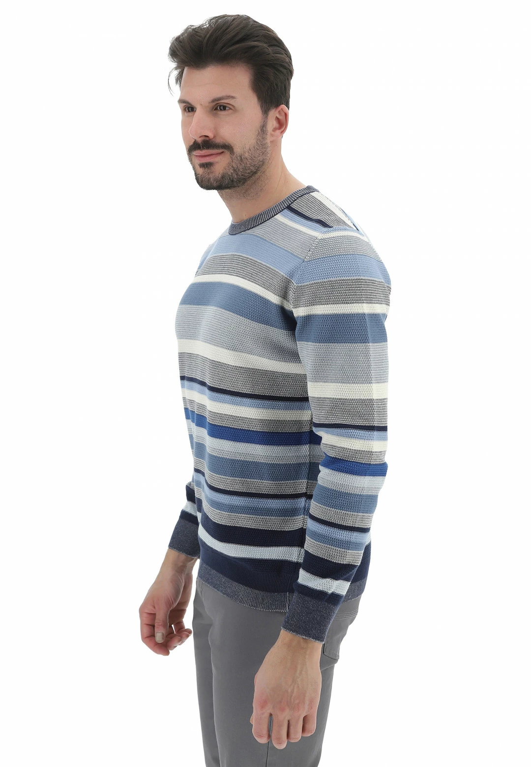 Magliocnino Girocollo Re Del Mare Uomo Con Lavorazione Punto Riso A Righe