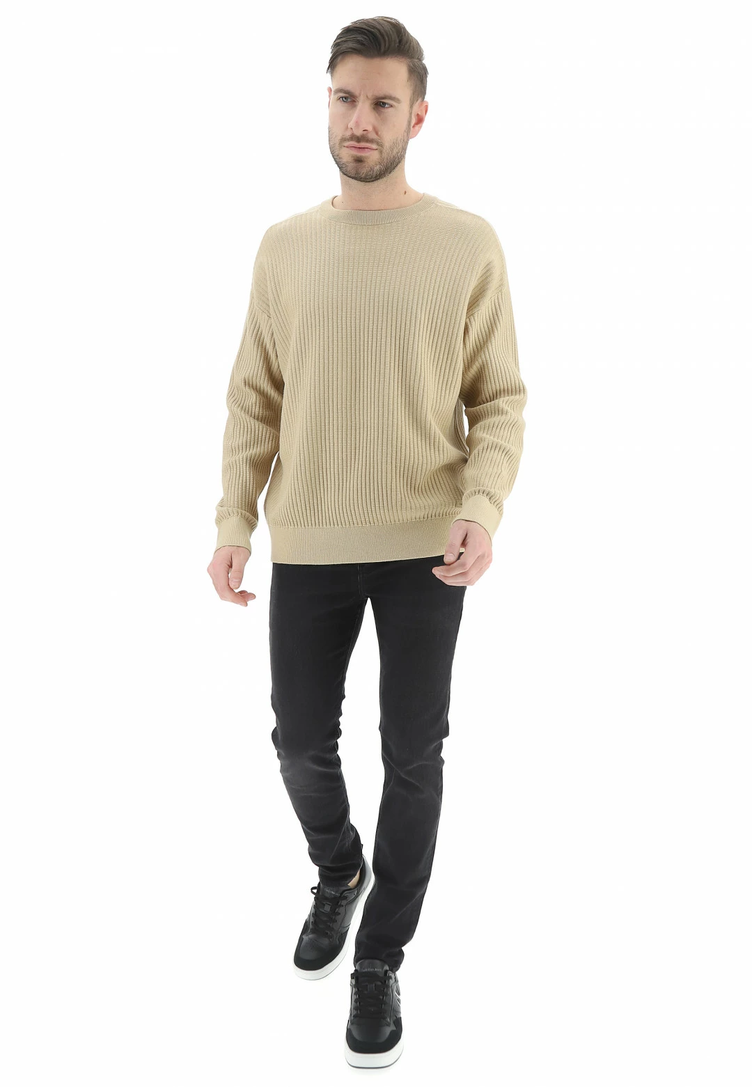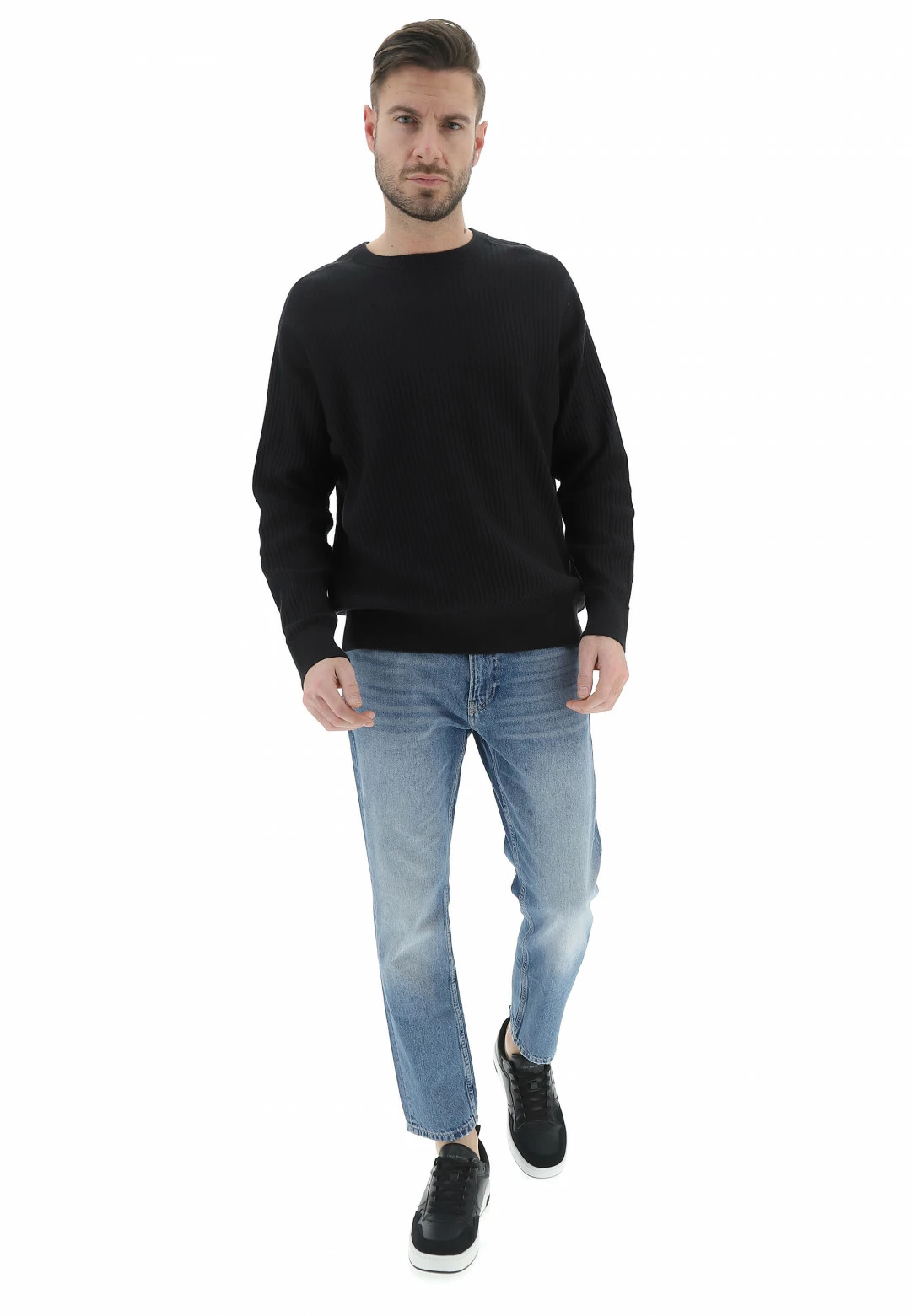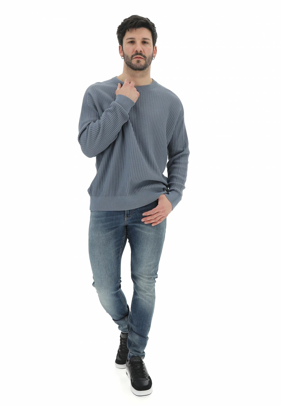 Maglioncino Calvin Klein Girocollo Uomo A Costine Tinta Unita