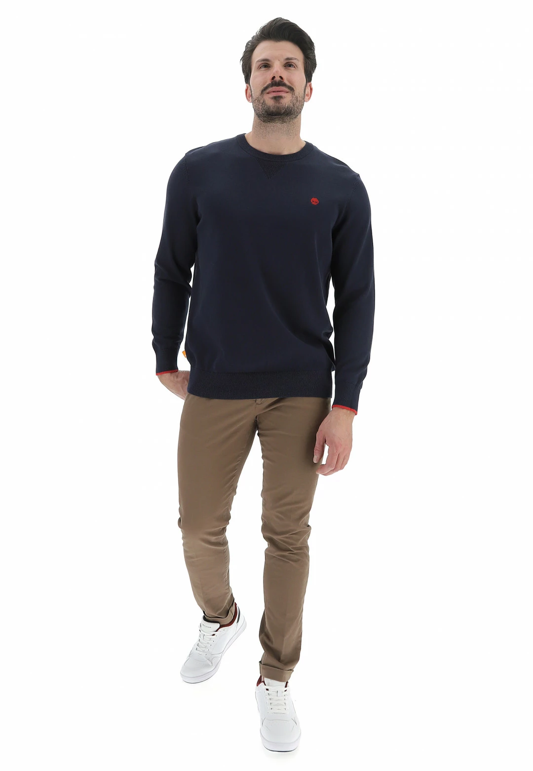 Maglioncino Girocollo Timberland In Cotone Biologico Con Logo Sul Petto A Contrasto