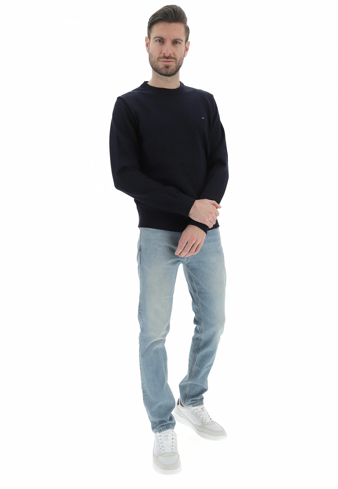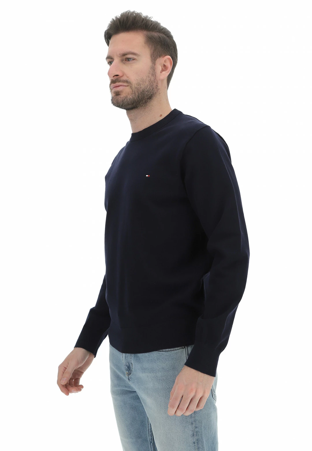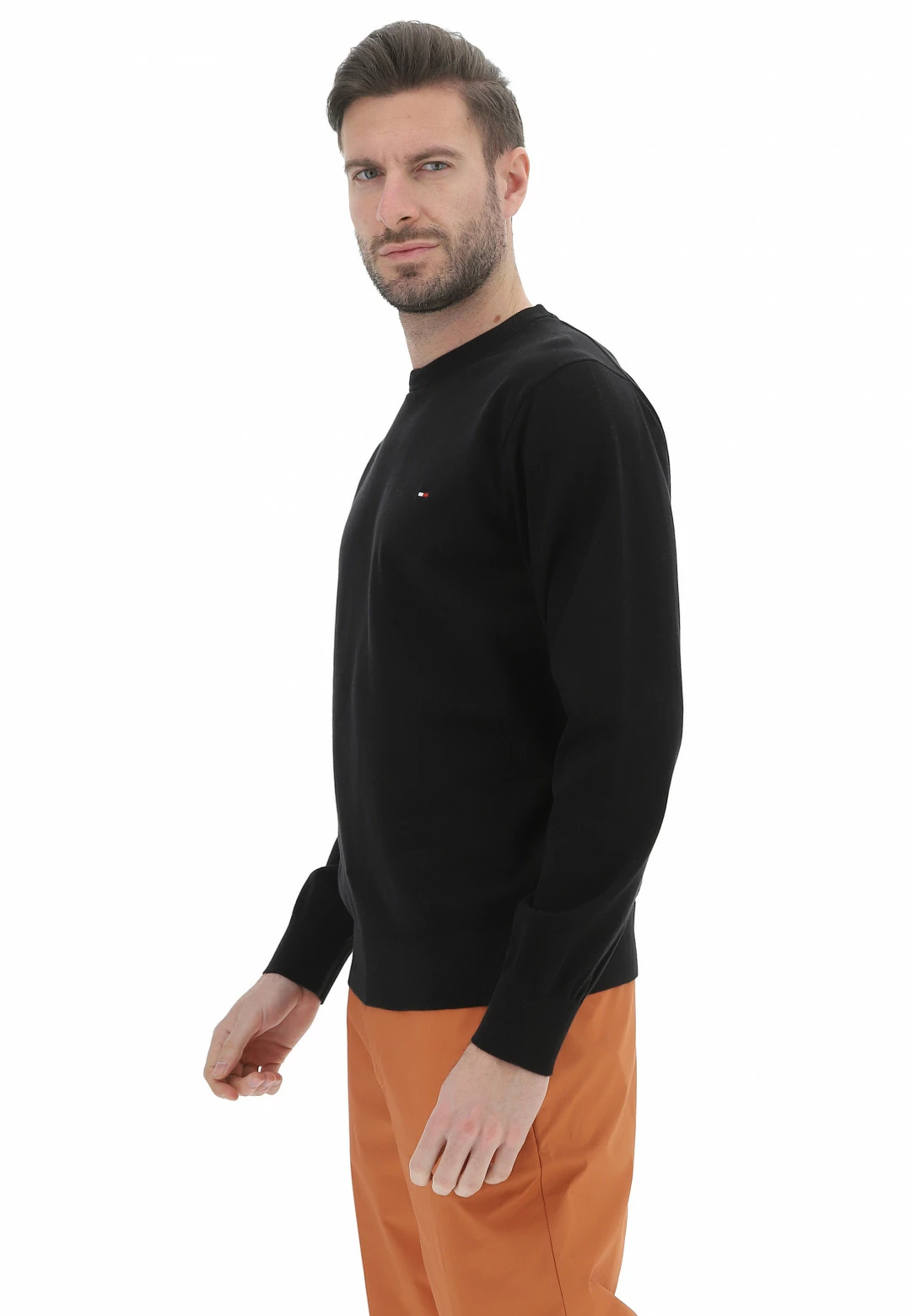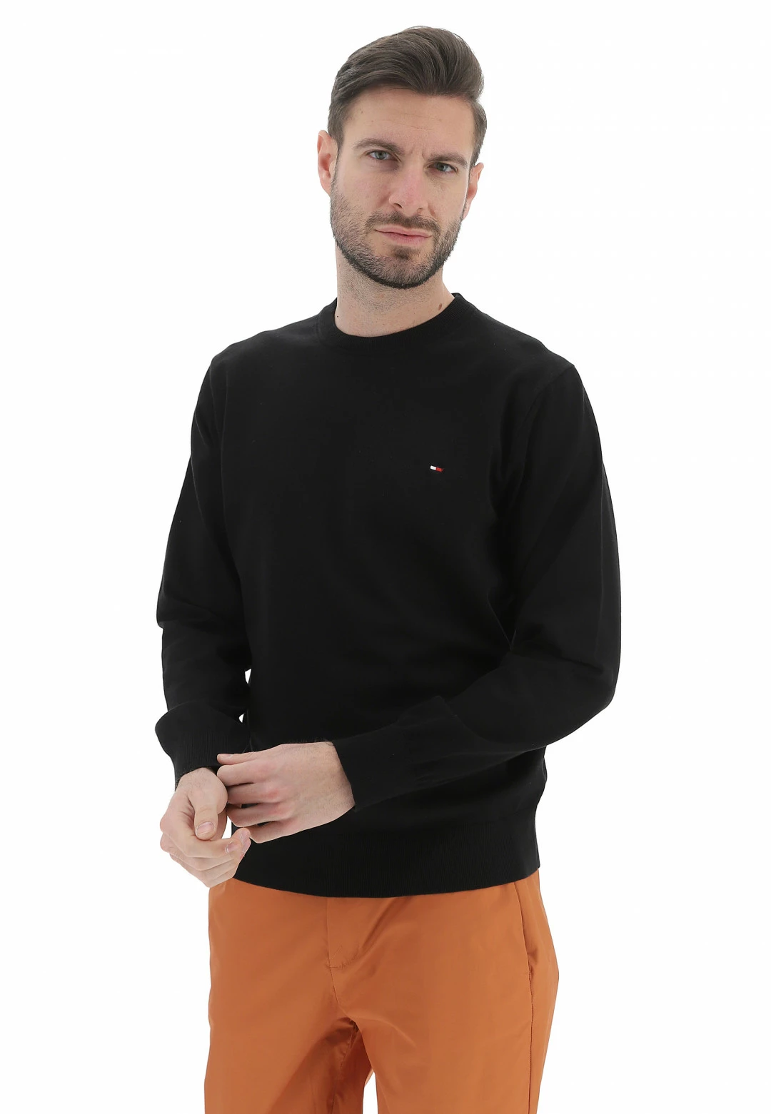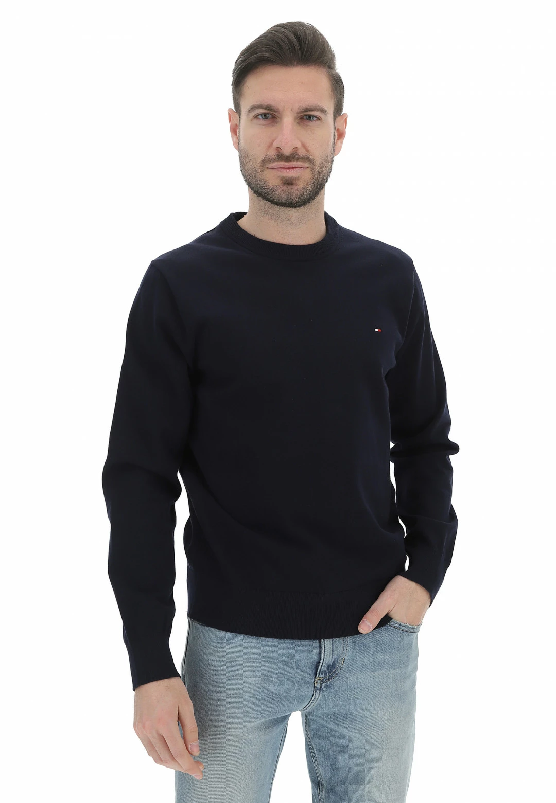 Maglioncino Girocollo Tommy Hilfiger Uomo Tinta Unita Con Logo Piccolo Ricamato
