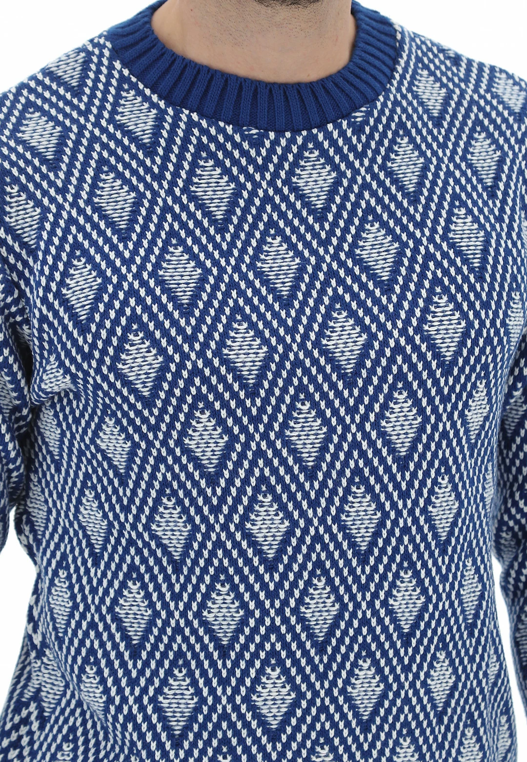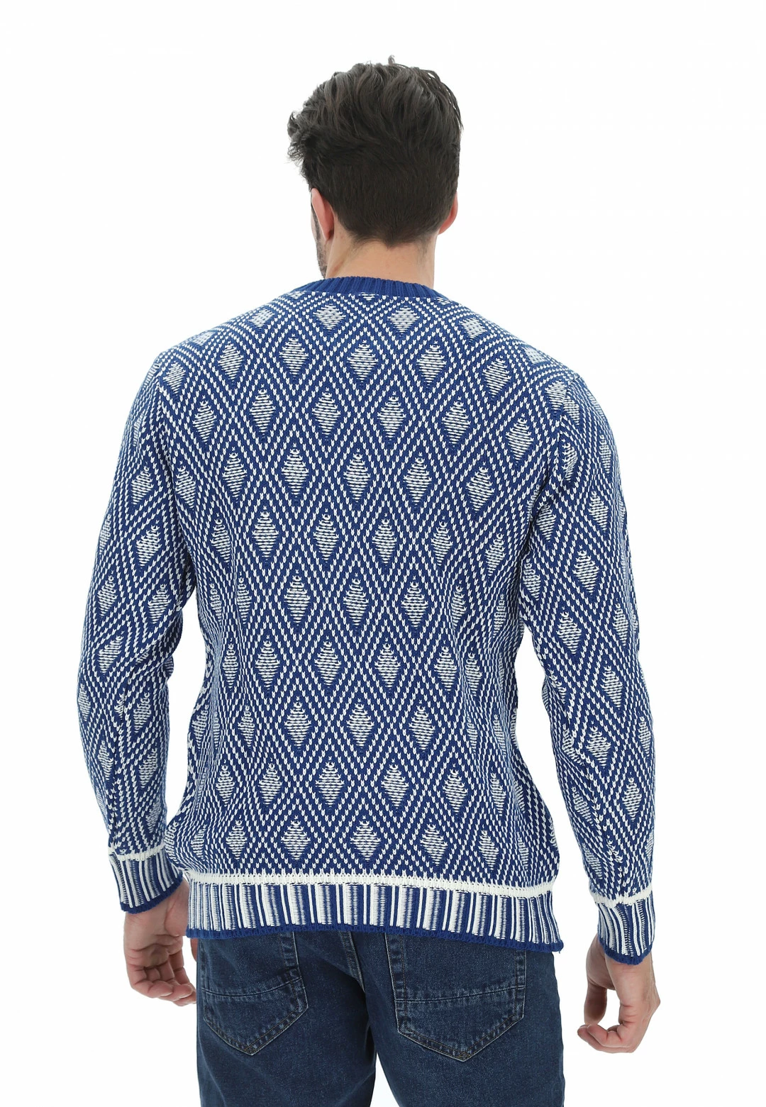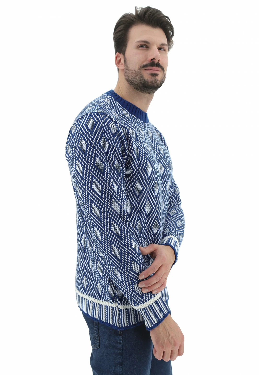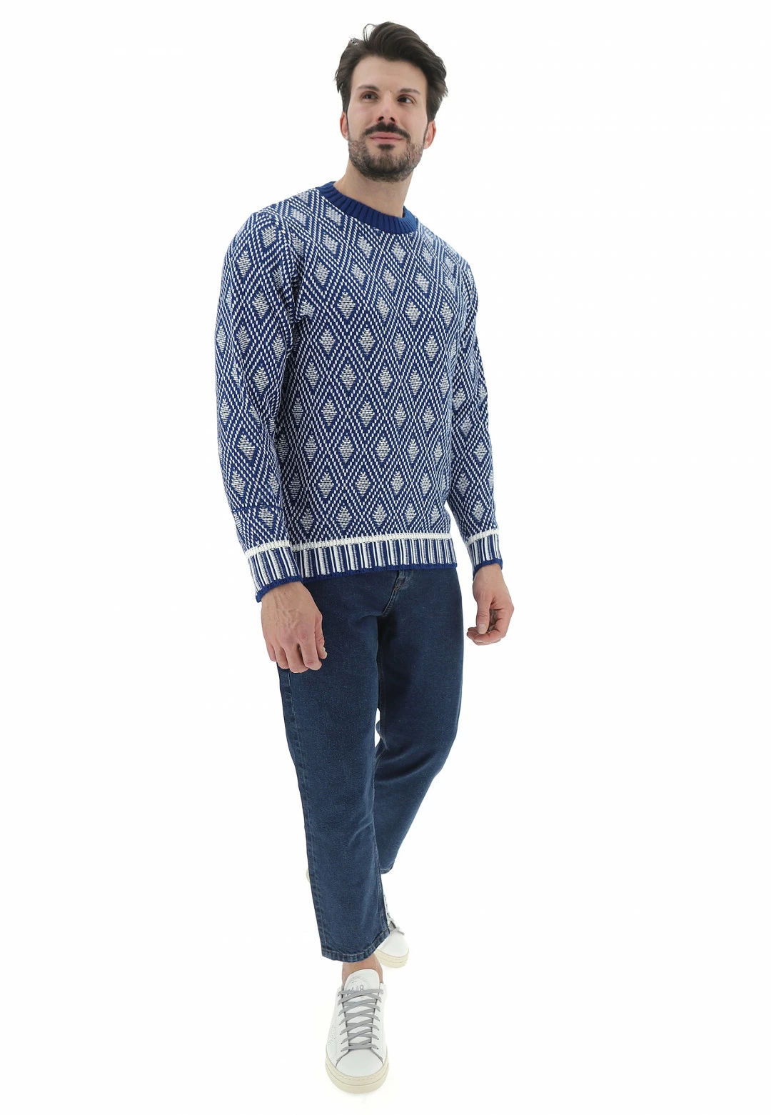 Maglione Age Uomo Girocollo In Misto Lana Con Lavorazione A Rombi Bicolor Made In Italy