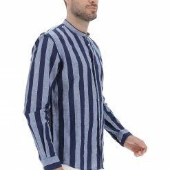 8.9 OTTOPUNTONOVE Camicia Coreana 8.9 In Lino E Cotone A Righe Uomo
