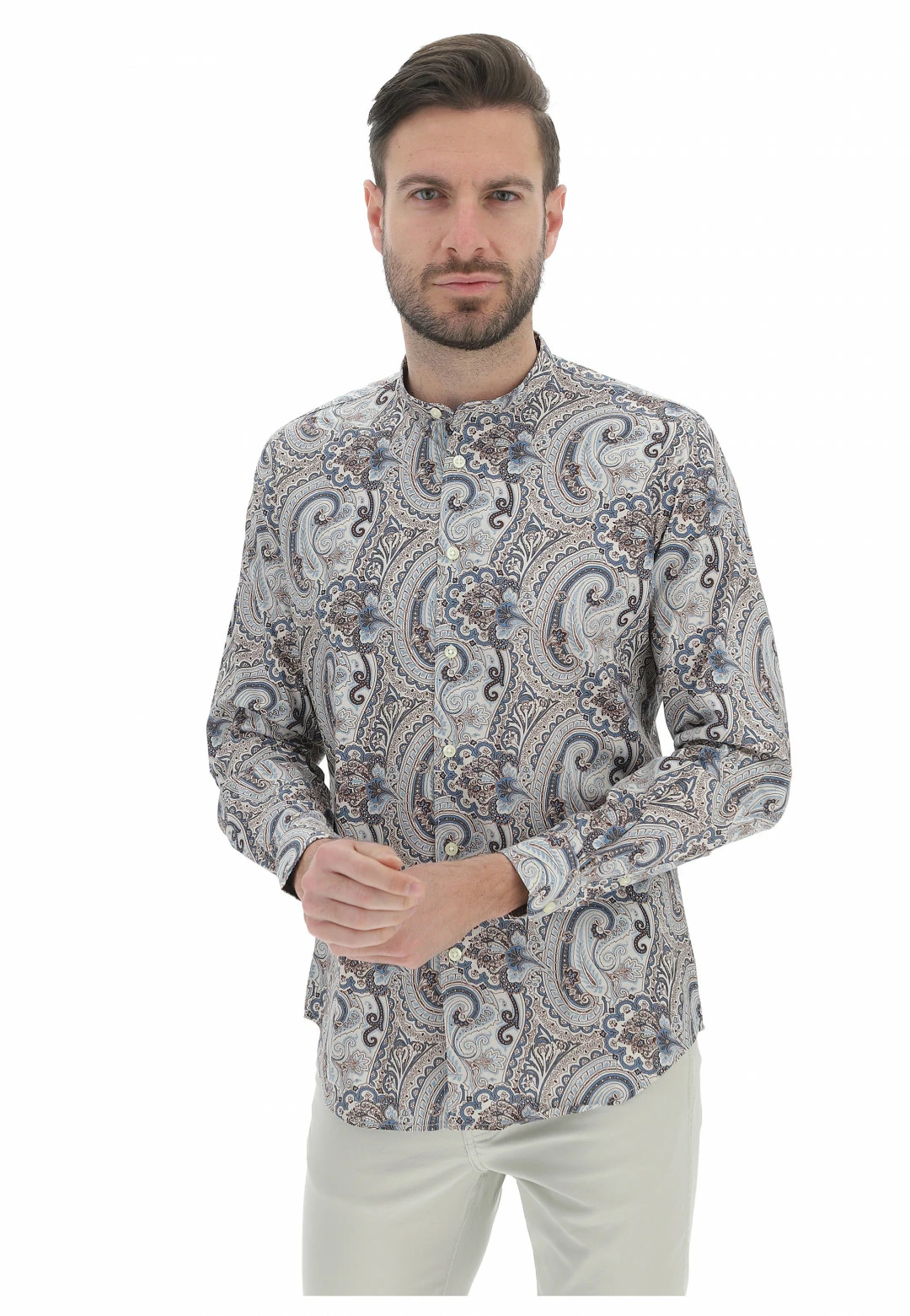 Over-D Camicia Over/d Con Scollo Alla Coreana In Fantasia All Over