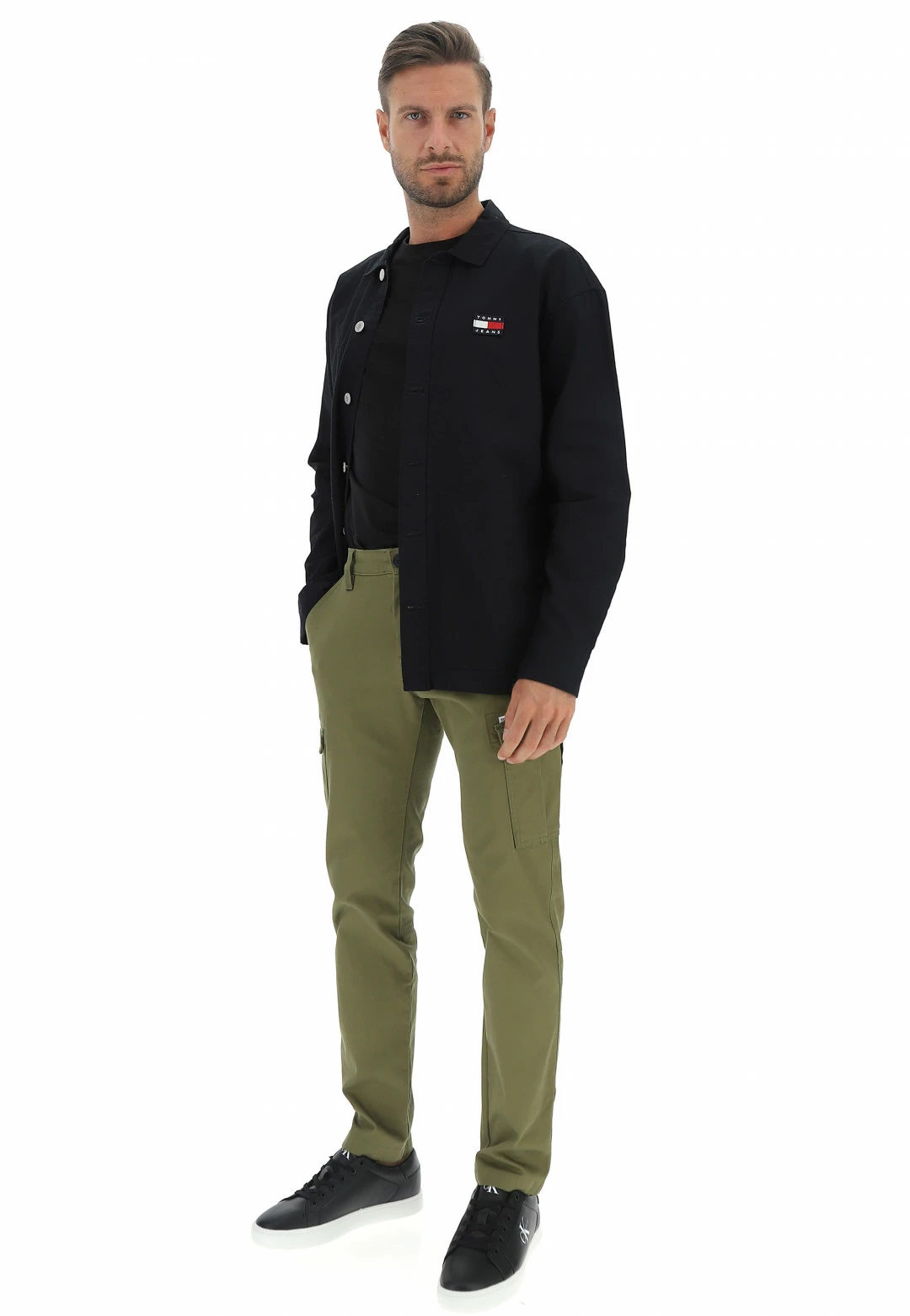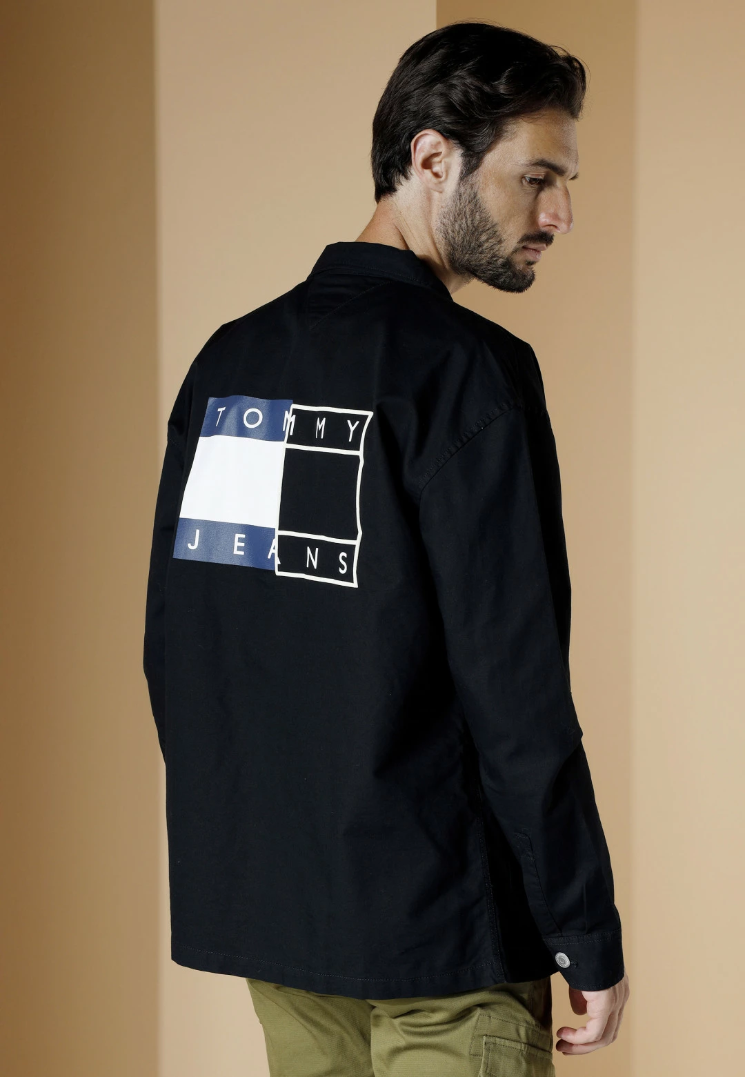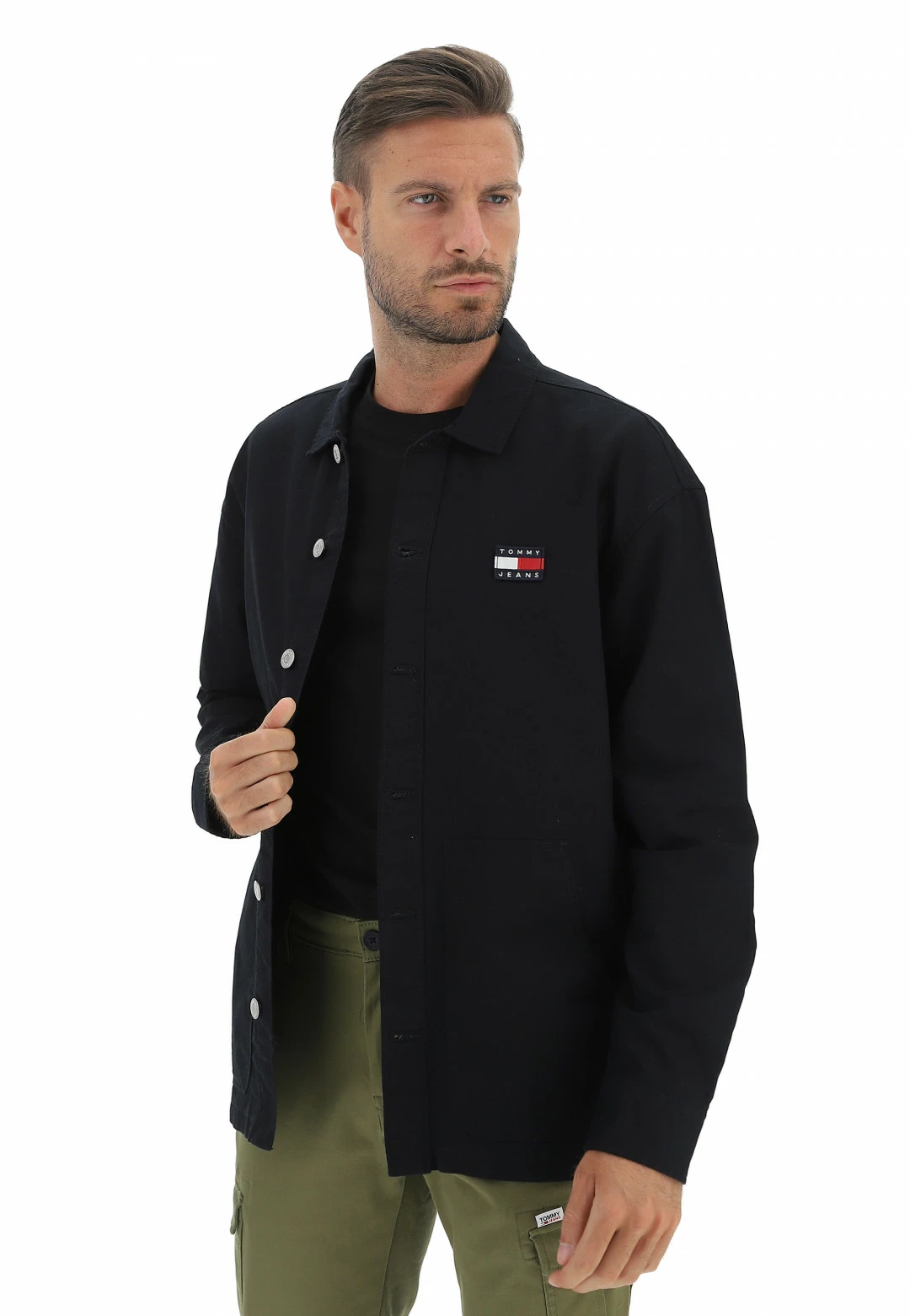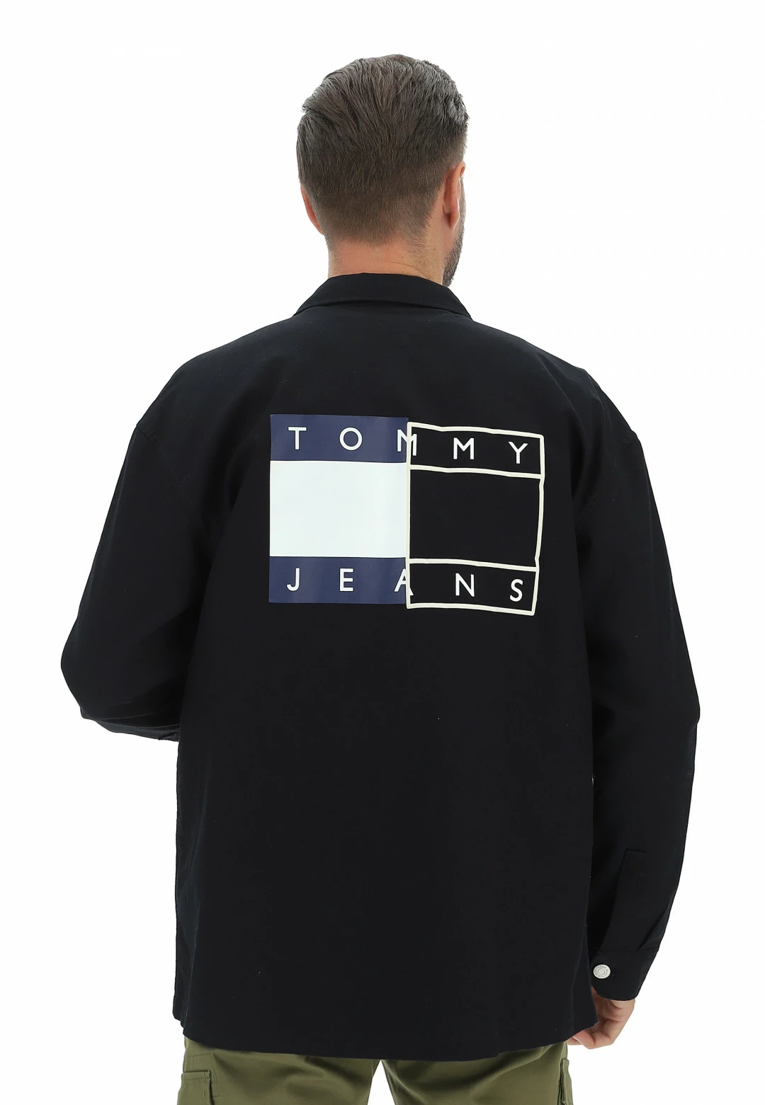 Tommy Hilfiger Jeans Camicia Casual Uomo Tommy Jeans Dm0dm14183 Overshirt Fit Con Logo Sul Retro