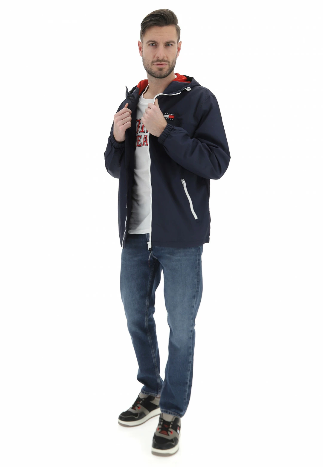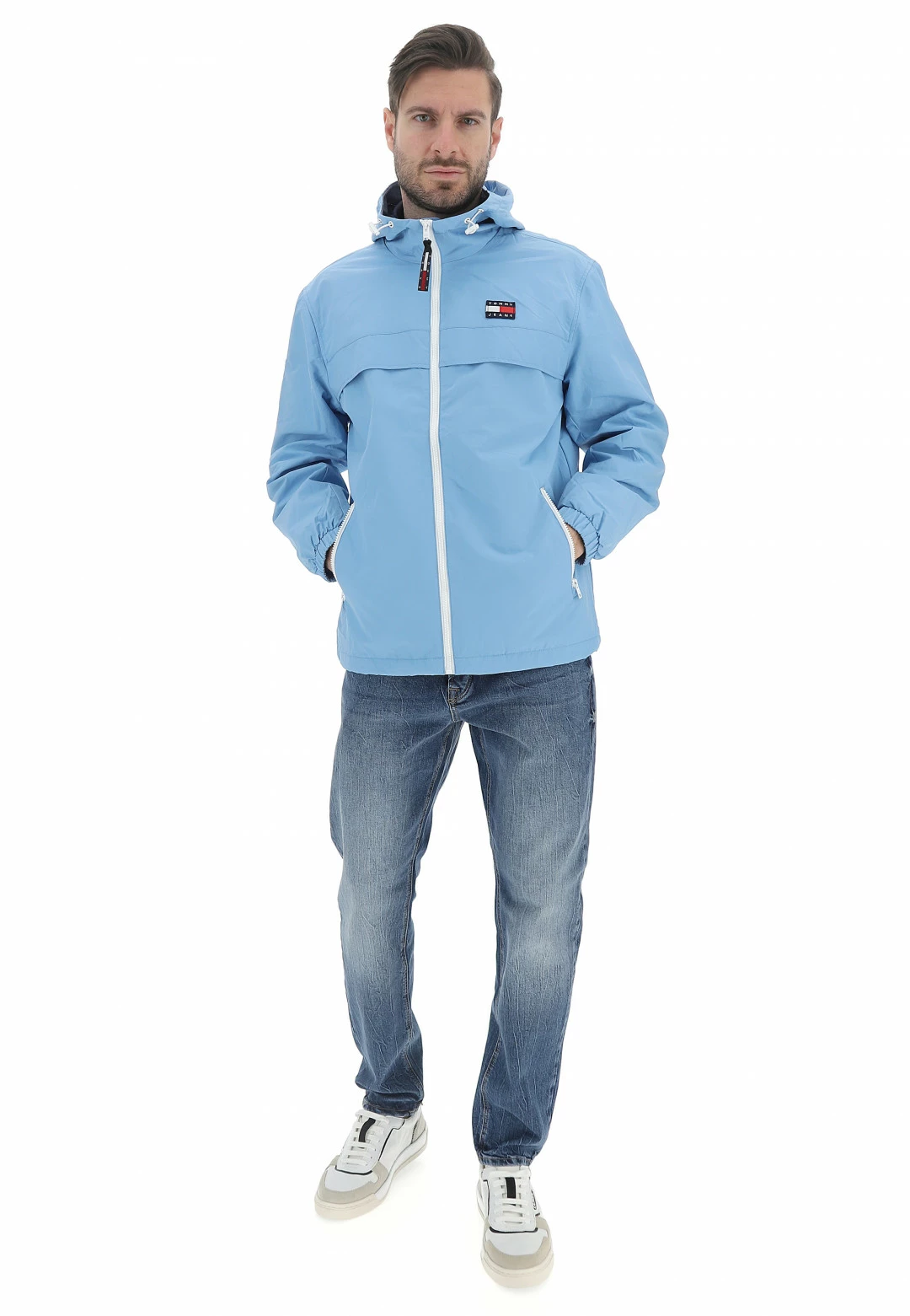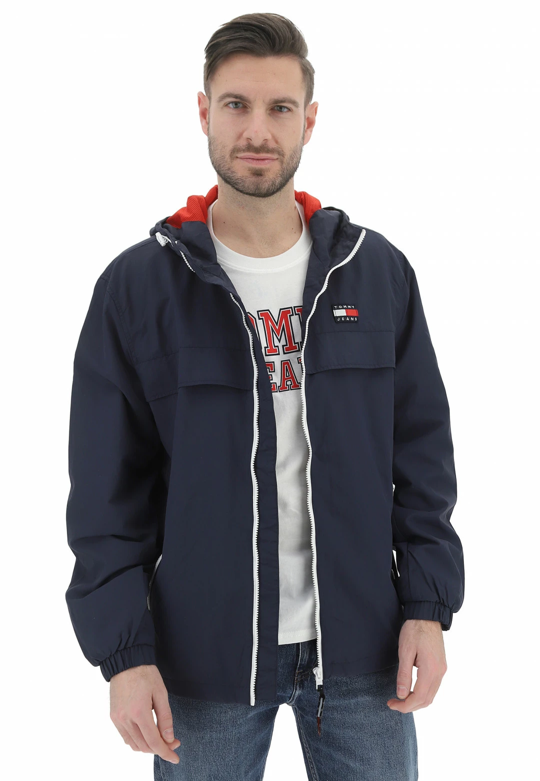 Tommy Hilfiger Jeans Giubbino In Nylon Tommy Jeans Uomo Con Cappuccio E Dettagli A Contrasto