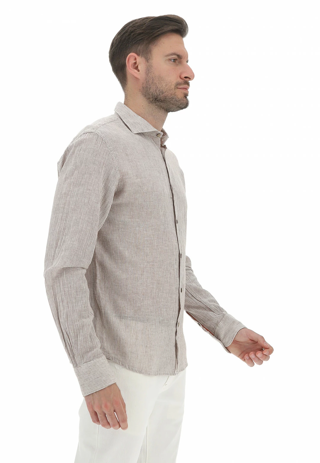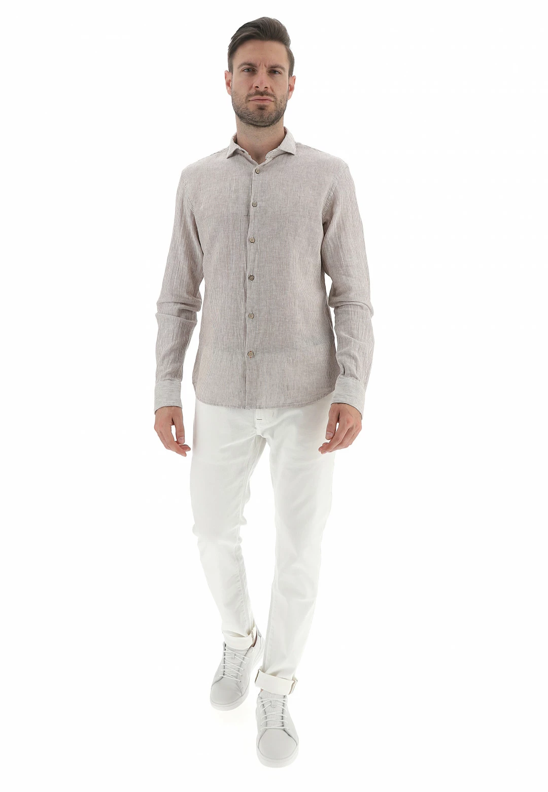 YES.ZEE Camicia Yes Zee Uomo Rigata In Misto Lino E Cotone